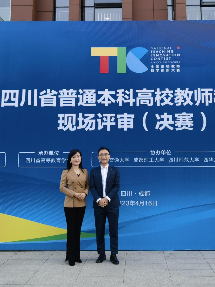 2023年4月16日,第三届四川省普通本科高校教师教学创新大赛(决赛)在西南交通大学落下帷幕。我院金垚和杨璐铭老师作为77779193永利集团代表团成员参加了比赛,经过前期网络评审、现场汇报、专家提问等环节的激烈角逐,两位老师从全省300多位选手中脱颖而出,金垚副教授获得副高组一等奖,杨璐铭教授获正高组二等奖。