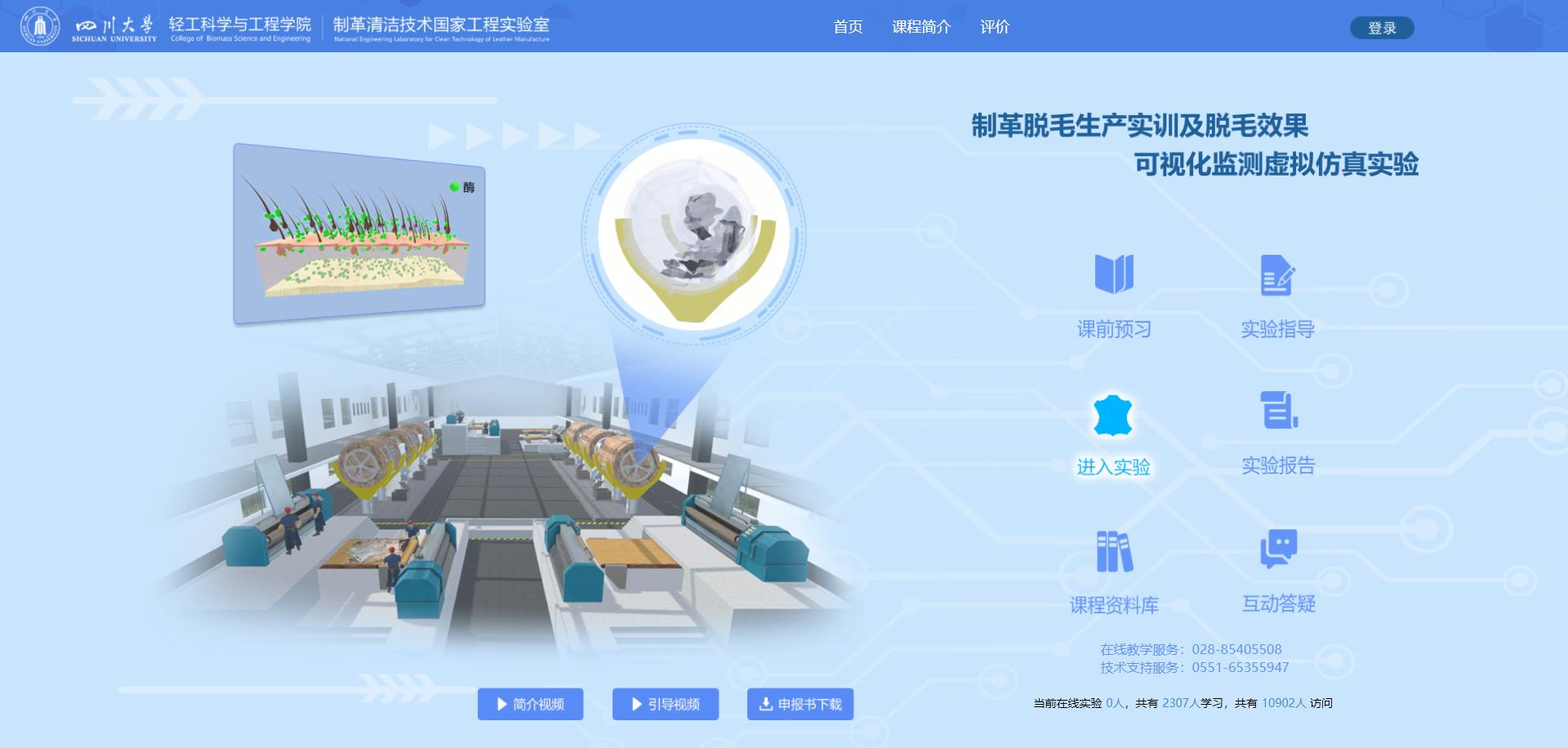 脱毛浸灰工序是皮革生产过程中最重要且急需推行清洁生产的环节之一,也一直是专业理论教学和实验教学的重点内容。如何帮助学生深入理解脱毛机理,直观认识脱毛工艺控制要点,体会最新的清洁生产科研成果,也是教学的难点。但是,由于实验时间空间受限、实验成本高、脱毛操作不可逆、实验安全隐患、实践中视野局限性等问题,当前线下实验实践教学环节难以规模化开展脱毛综合实训。