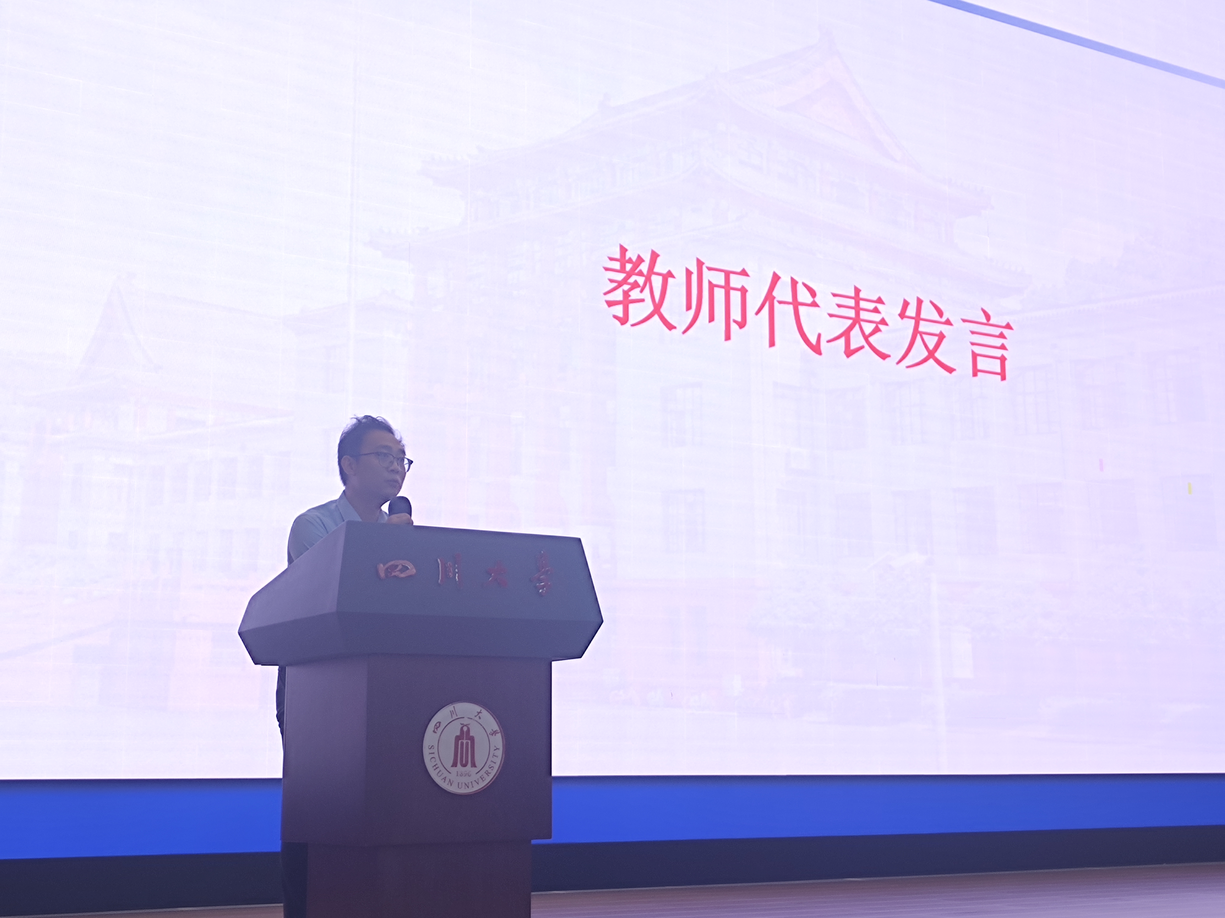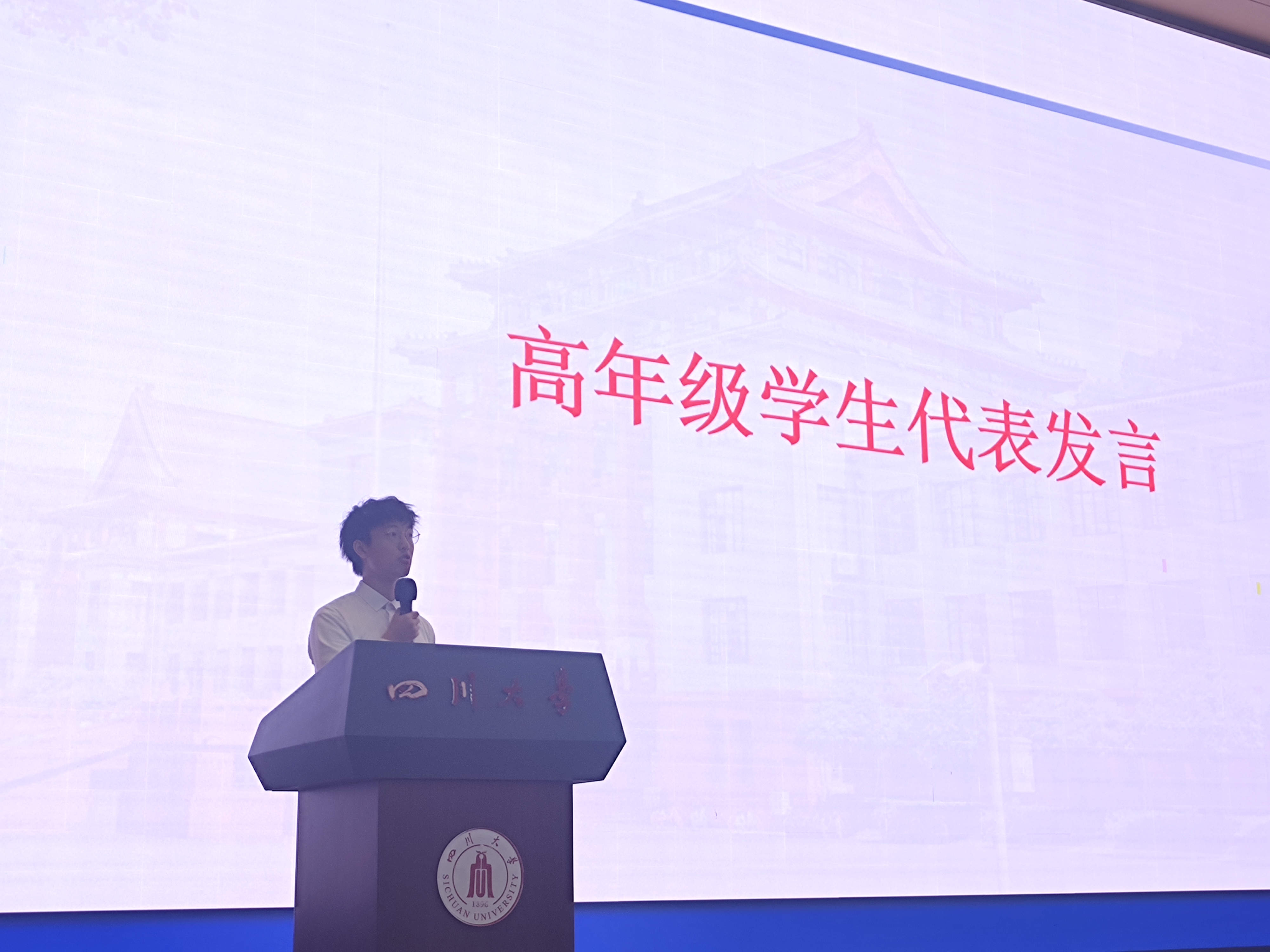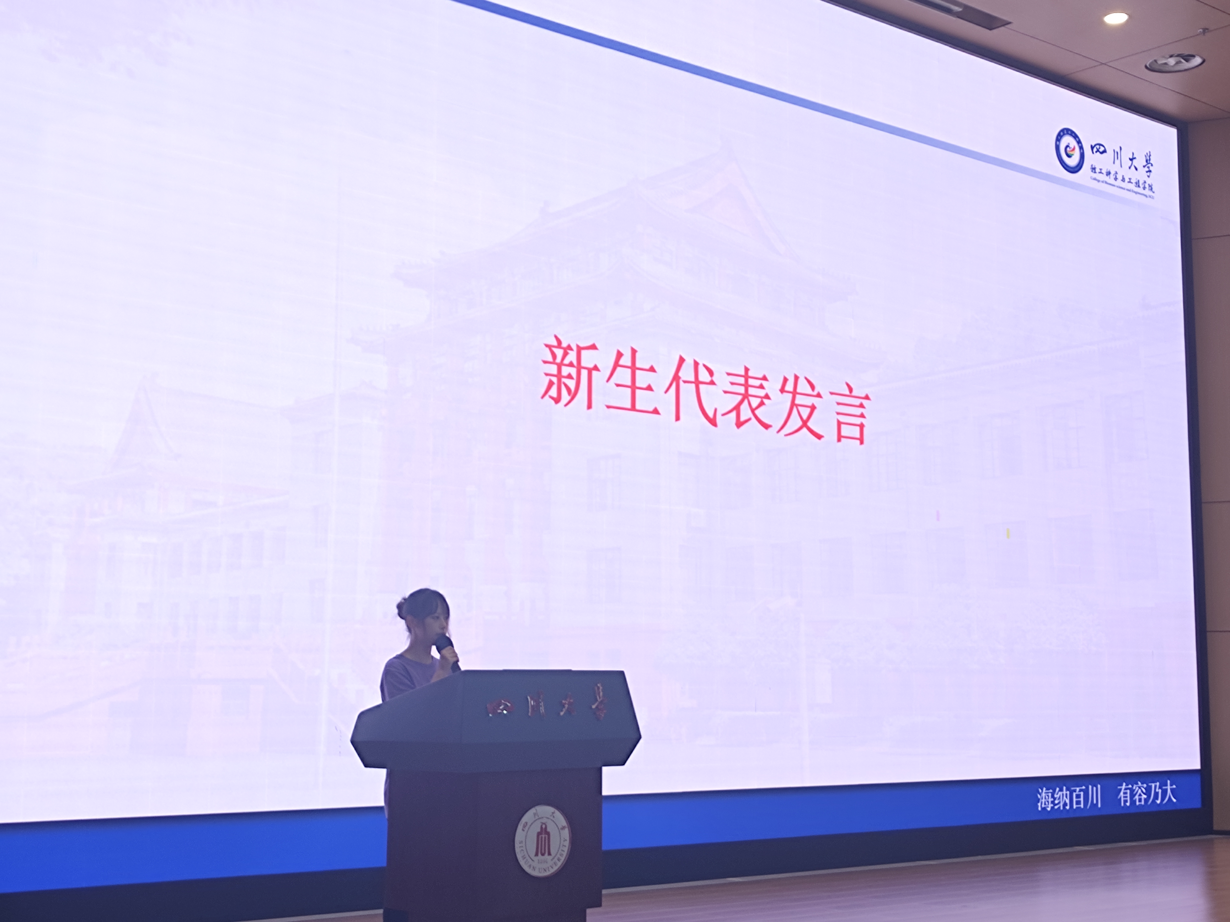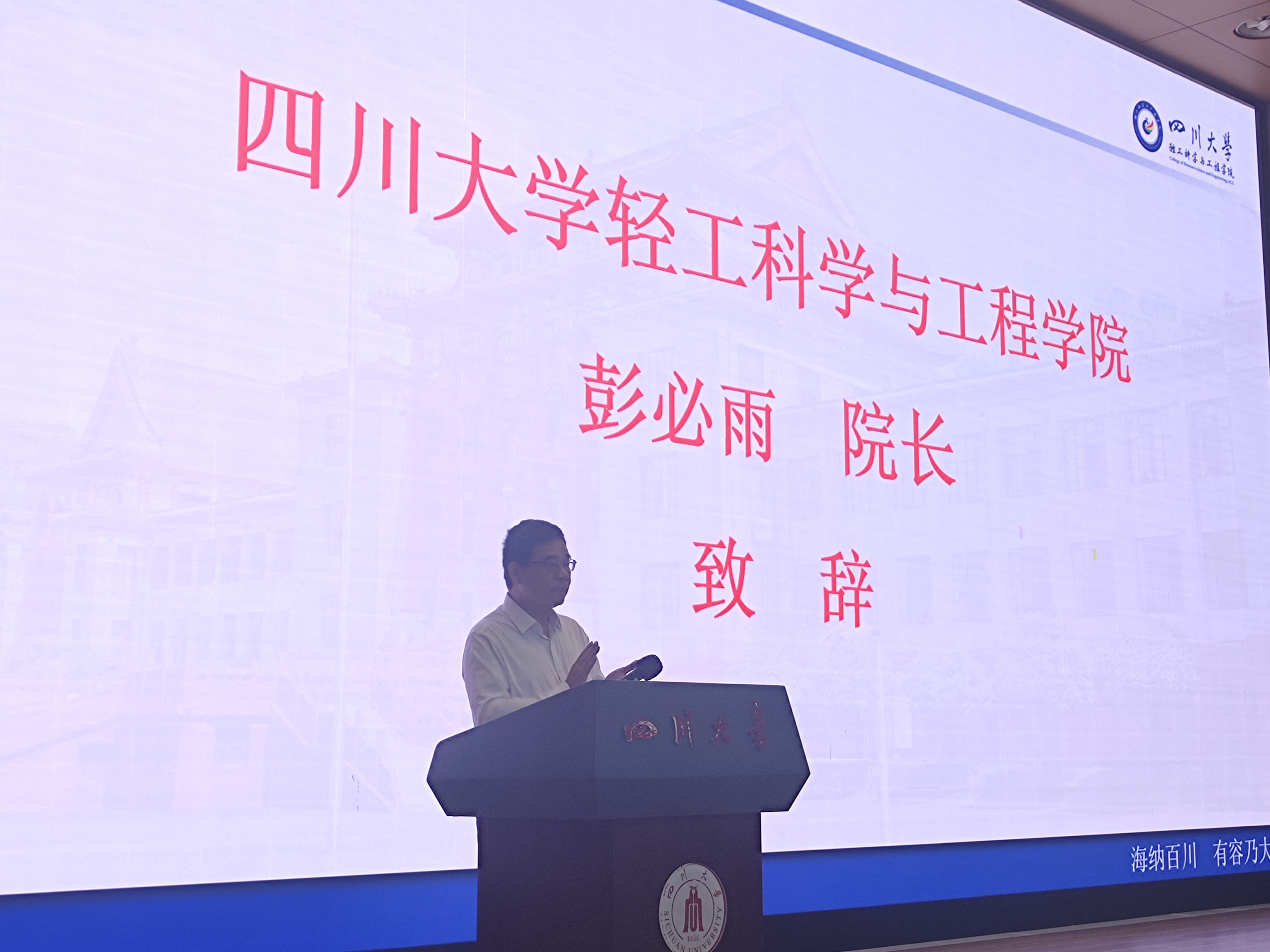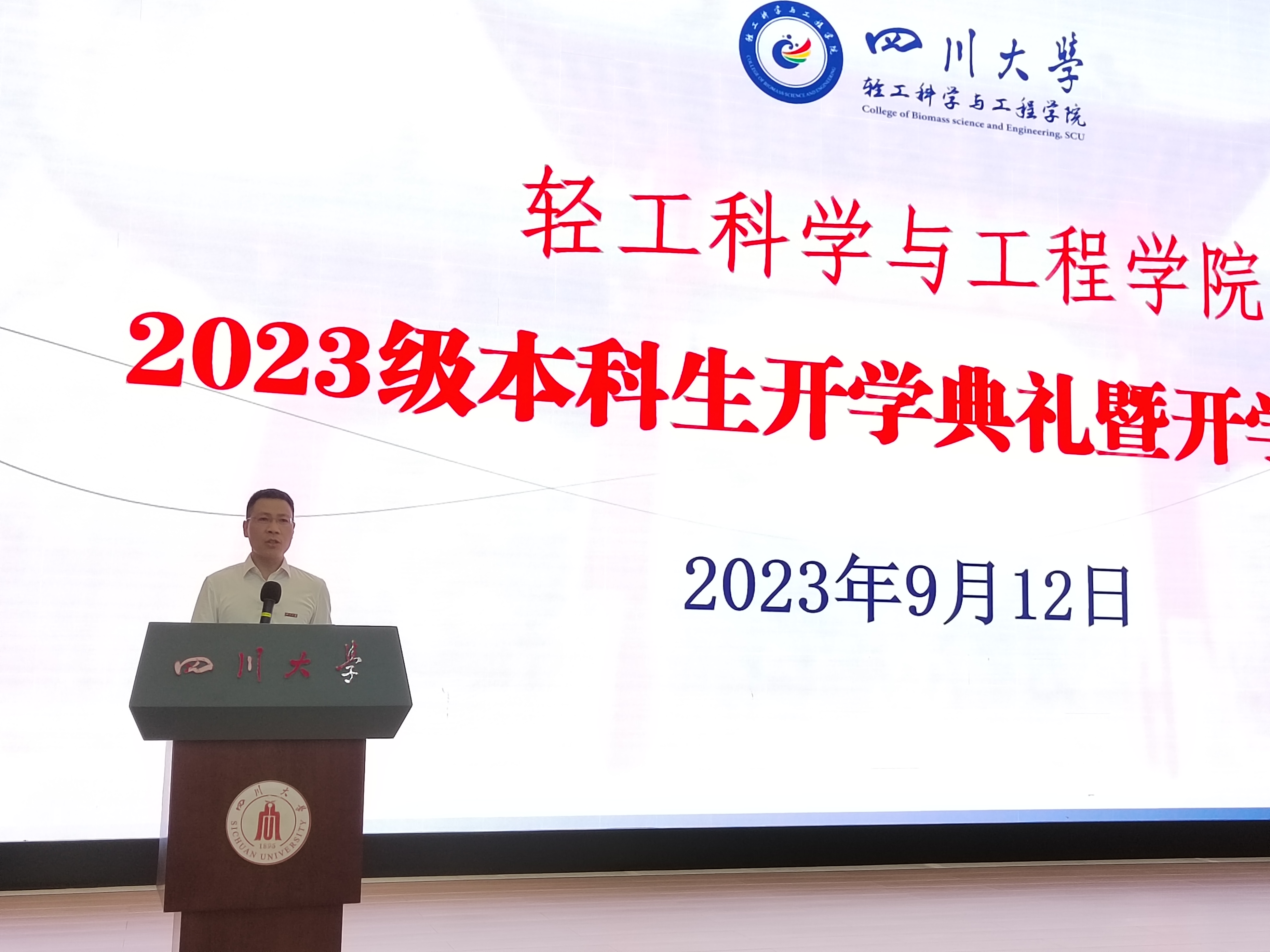 开学典礼在庄严的国歌声中正式开始。首先,院长彭必雨教授致辞。彭院长代表学院党政对顺利进入轻工科学与工程学院的318名2023级本科生新同学表示最衷心的祝贺,对大家的到来表示热烈的欢迎,并对全体本科新生提出三点希望。第一,继续保持勤奋上进、不畏艰难的学习态度,做学习中最好的自己。彭院长希望同学们持续保持高中阶段勤奋好学、追求上进的学习态度,不畏惧困难,严于律己,尽快适应大学学习方法,让学习知识、增长才干成为大学的首要任务。第二,尽快适应开放自由、全面发展的大学环境,做大学中最好的自己。希望大家要充分运用好一流大学的教学、科研、图书馆等公共资源,在开放自由的大学环境中,将一流资源转化为推动自我成长、促进自我进步的积极因素,努力成长为全面发展的合格人才。第三,努力塑造人格健全、本领过硬的优良品质,做社会中最好的自己。希望同学们在大学期间进一步树牢社会主义核心价值观,塑造健全人格,锤炼过硬本领,成长为与双一流大学相匹配的品德高尚、气质优雅、才干出众的社会主义事业接班人,为国家轻工行业的高质量发展作出川大人应有的贡献!