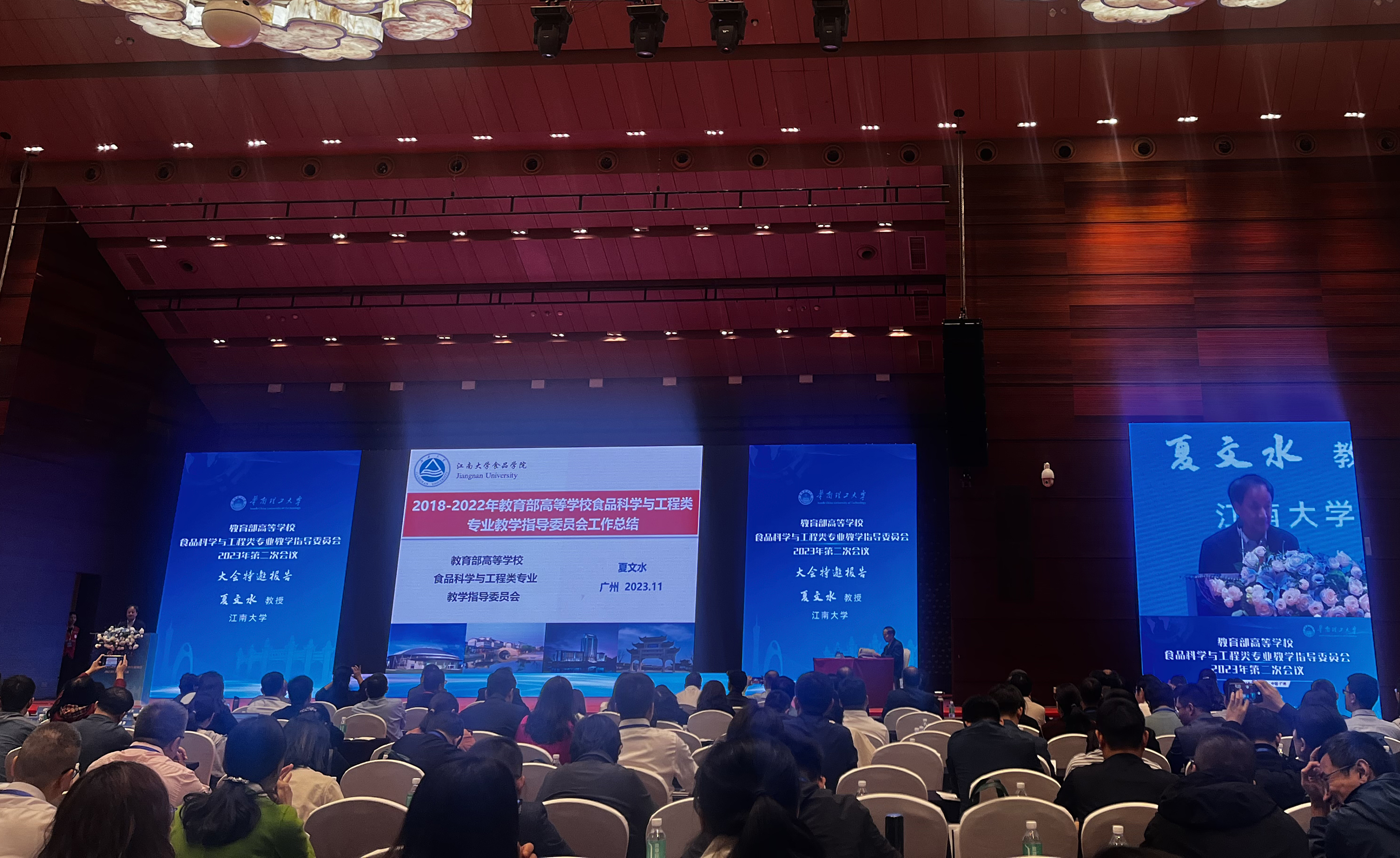 教育部高等学校食品科学与工程类专业教学指导委员会暨教学研讨会2023年第二次会议于2023年11月23-25日在广州召开。教育部高等学校食品科学与工程类专业教学指导委员会主任、副主任与委员,广东省教育厅高教处姜琳处长,以及来自国内127所高校的食品学院领导、食品科学与工程类专业或教学负责人等出席本次会议。我院食品工程系何强、迟原龙、吕远平、段飞霞、董怡、黄伦杰老师,应邀出席大会,何强教授作为教指委委员全程参加各项议题及主题研讨,并主持大会专题交流报告“食品类高校课程建设与改革交流”。