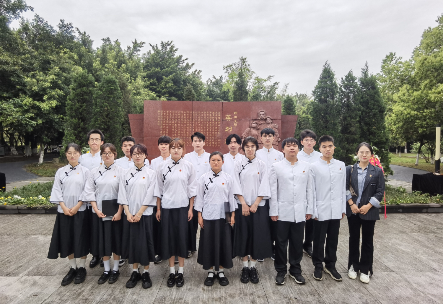 活动伊始,师生代表们全体肃立,手捧黄白菊,并向川大英烈以及为中国人民解放事业和国家建设事业英勇献身的烈士默哀。