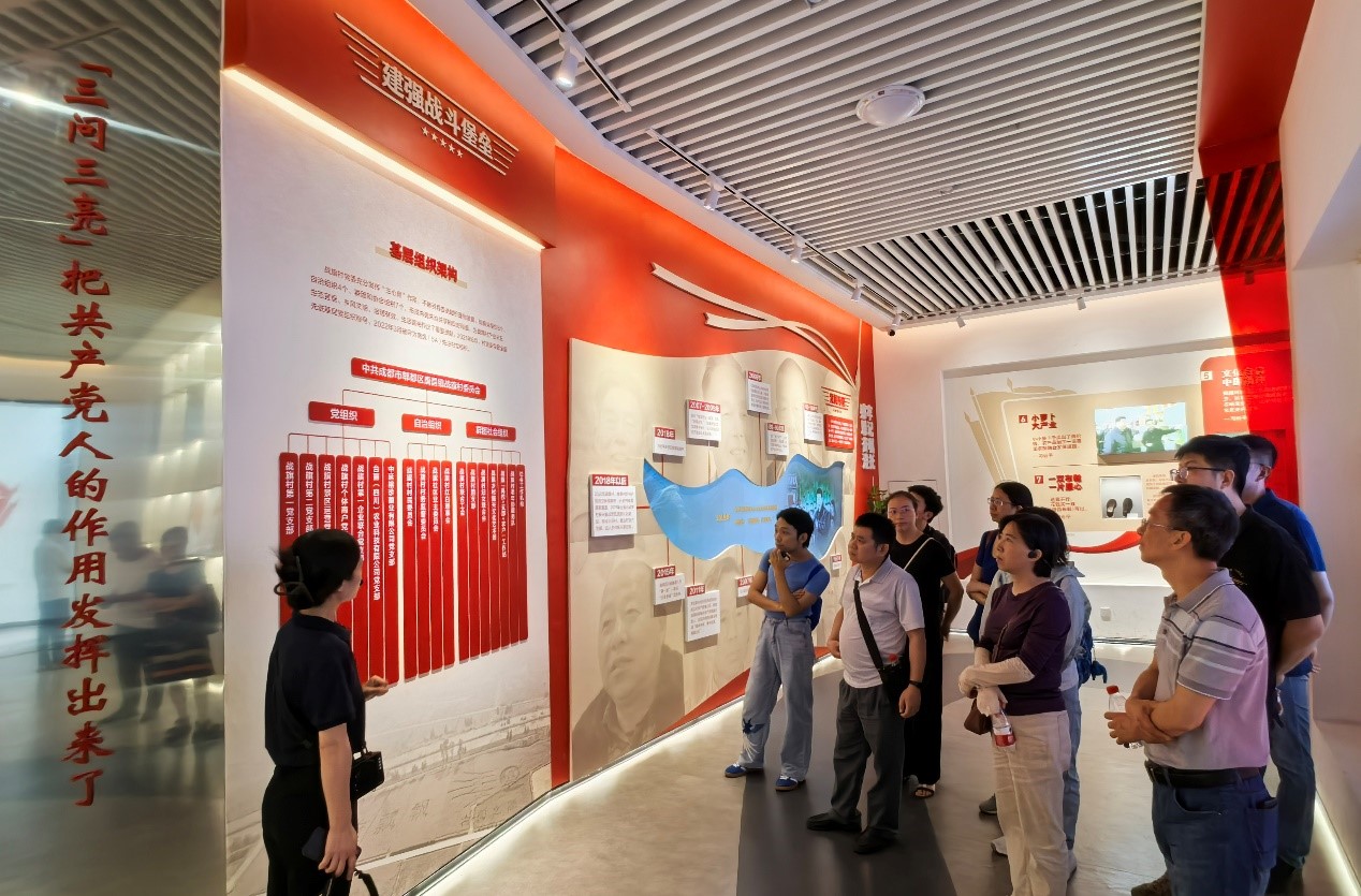 在参观过程中,大家目睹了战旗村日新月异的乡村变化。村庄环境优美、设施完善,村民生活富足,社会和谐。在党建引领下,战旗村通过科学规划、盘活资源、发展特色产业和乡村旅游等措施,在乡村振兴道路上阔步前行,树立了典范。大家实地观摩了战旗“初心”馆、村党群服务中心和村史馆等,了解了战旗村在基层党组织带领下进行乡村建设、基层治理、产业发展等方面的成功做法,学习了战旗村“三问三亮六带头”、“三诺三办两评议”以及“七个满覆盖”等党建工作特色,重温了习近平总书记对战旗村“战旗飘飘,名副其实,走在前列,起好示范”的高度称赞与殷切嘱托,深刻感受到基层党组织在乡村振兴中的战斗堡垒作用,“火车跑得快,全靠车头带”。