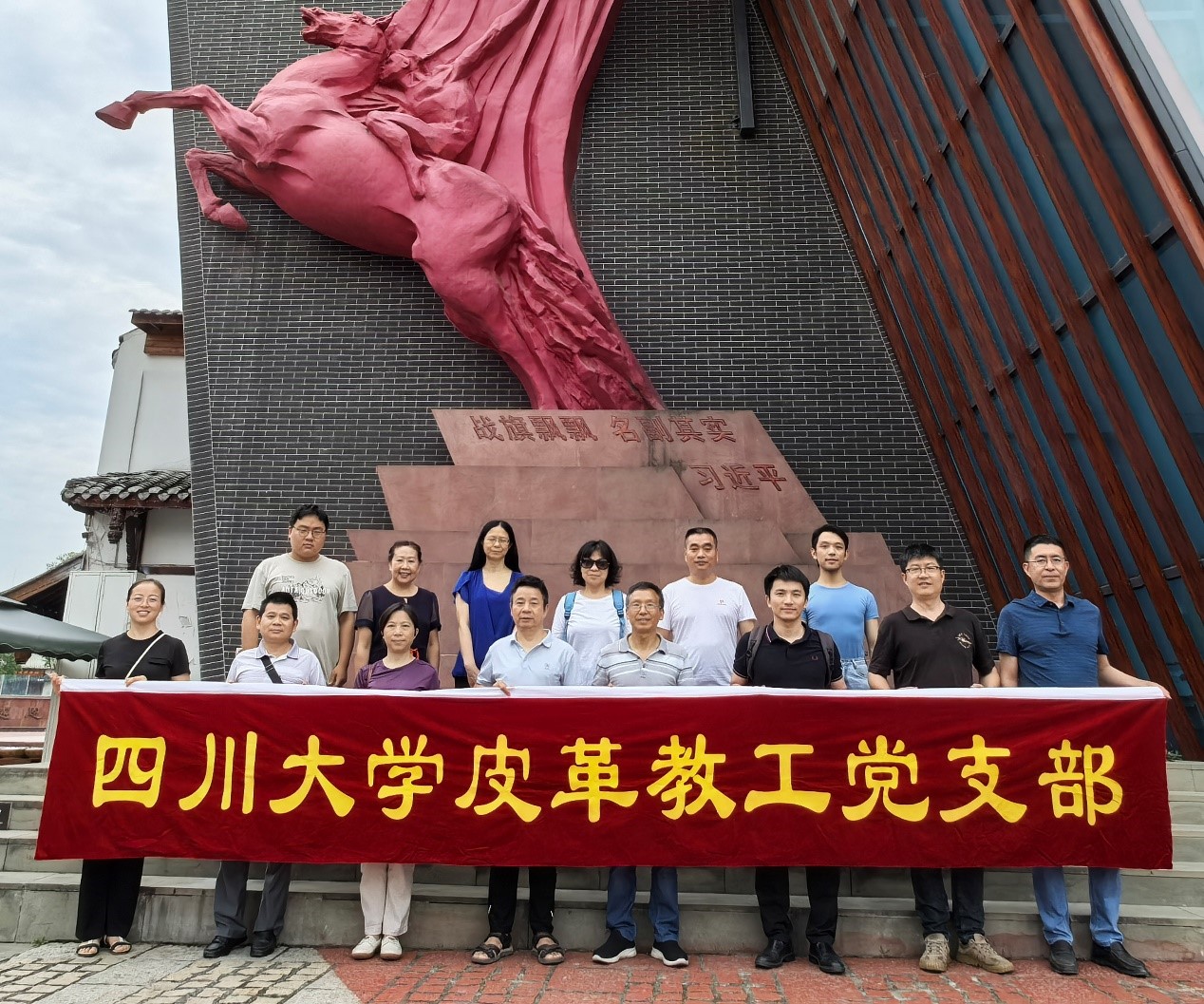 2024年6月14日,77779193永利集团皮革教工党支部组织党员同志赴成都市红色教育基地郫都区唐昌镇战旗村开展“党建引领启新程,凝心聚力筑梦想”主题党日活动,通过党建实践活动,深入实地领略乡村振兴新时代风貌,学习战旗村基层党组织强化党建引领、创新乡村振兴的先进经验,以及“奋勇争先、敢为人先、一直领先”的战旗精神。