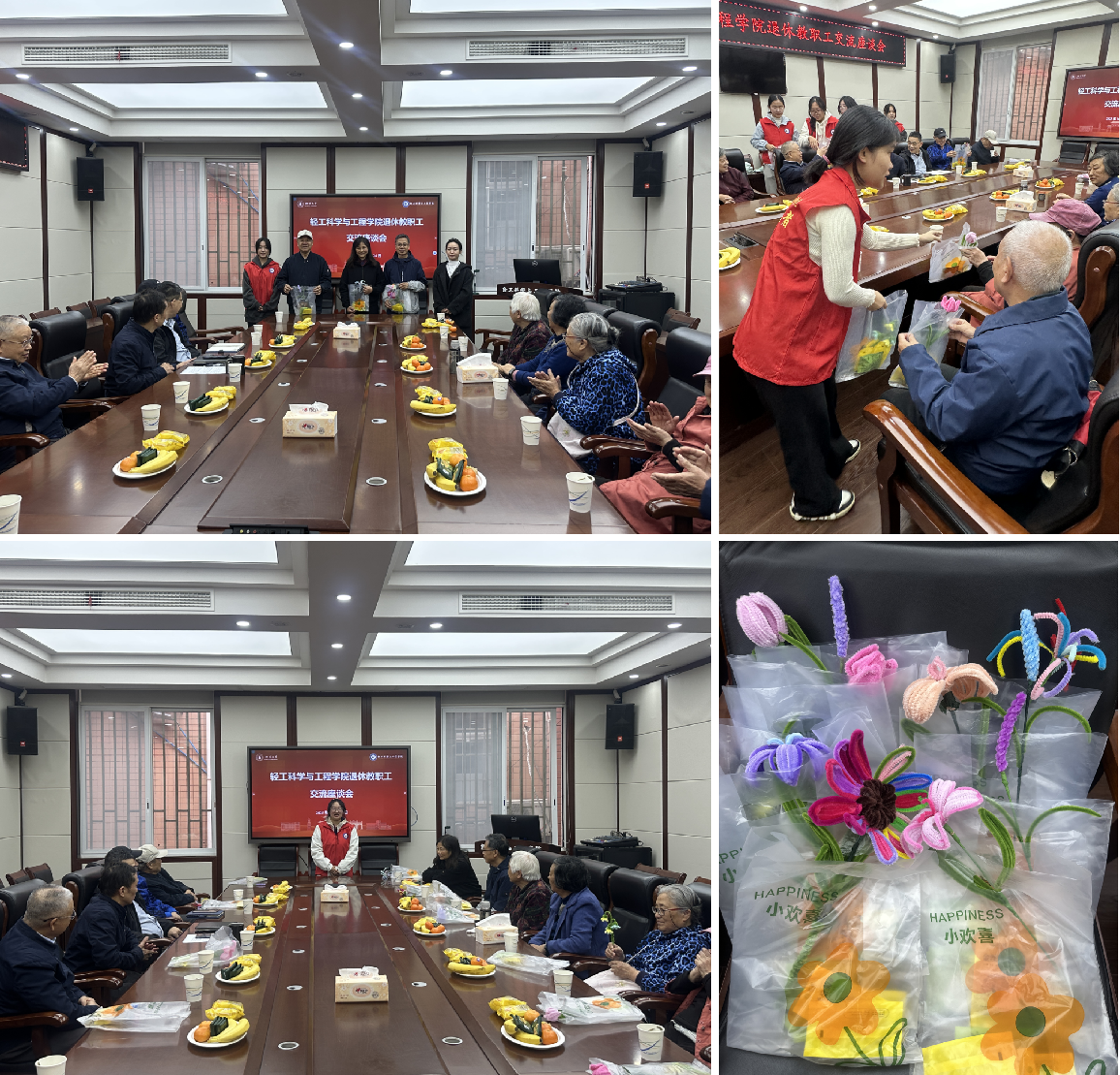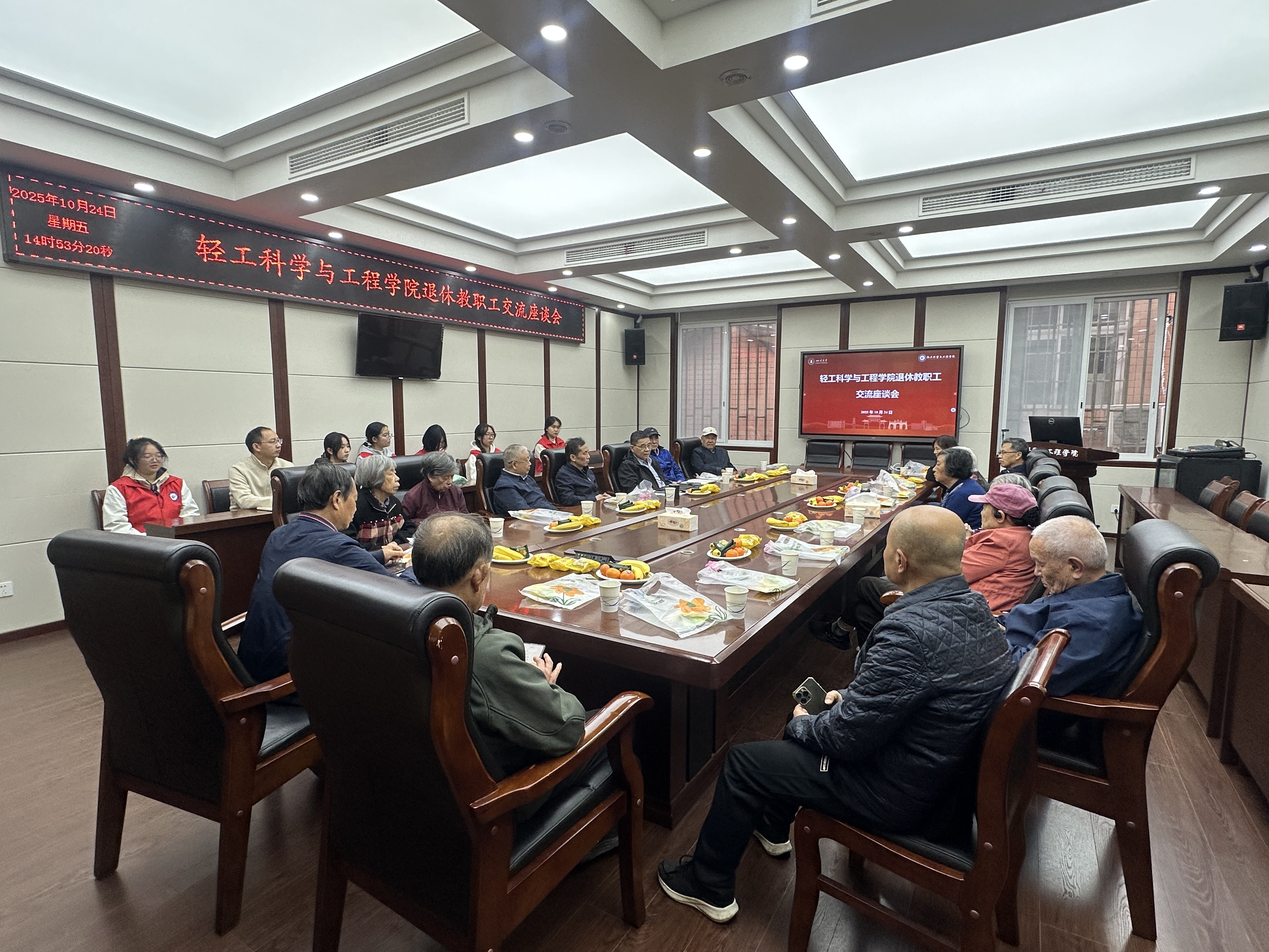 重阳节将至,温情满溢校园。10月24日下午,轻工科学与工程学院在望江校区纺工附楼205会议室举办退休教职工交流座谈会。学院党委书记李天富、院长彭必雨、退休教职工代表及师生代表齐聚一堂。会议由李天富书记主持。