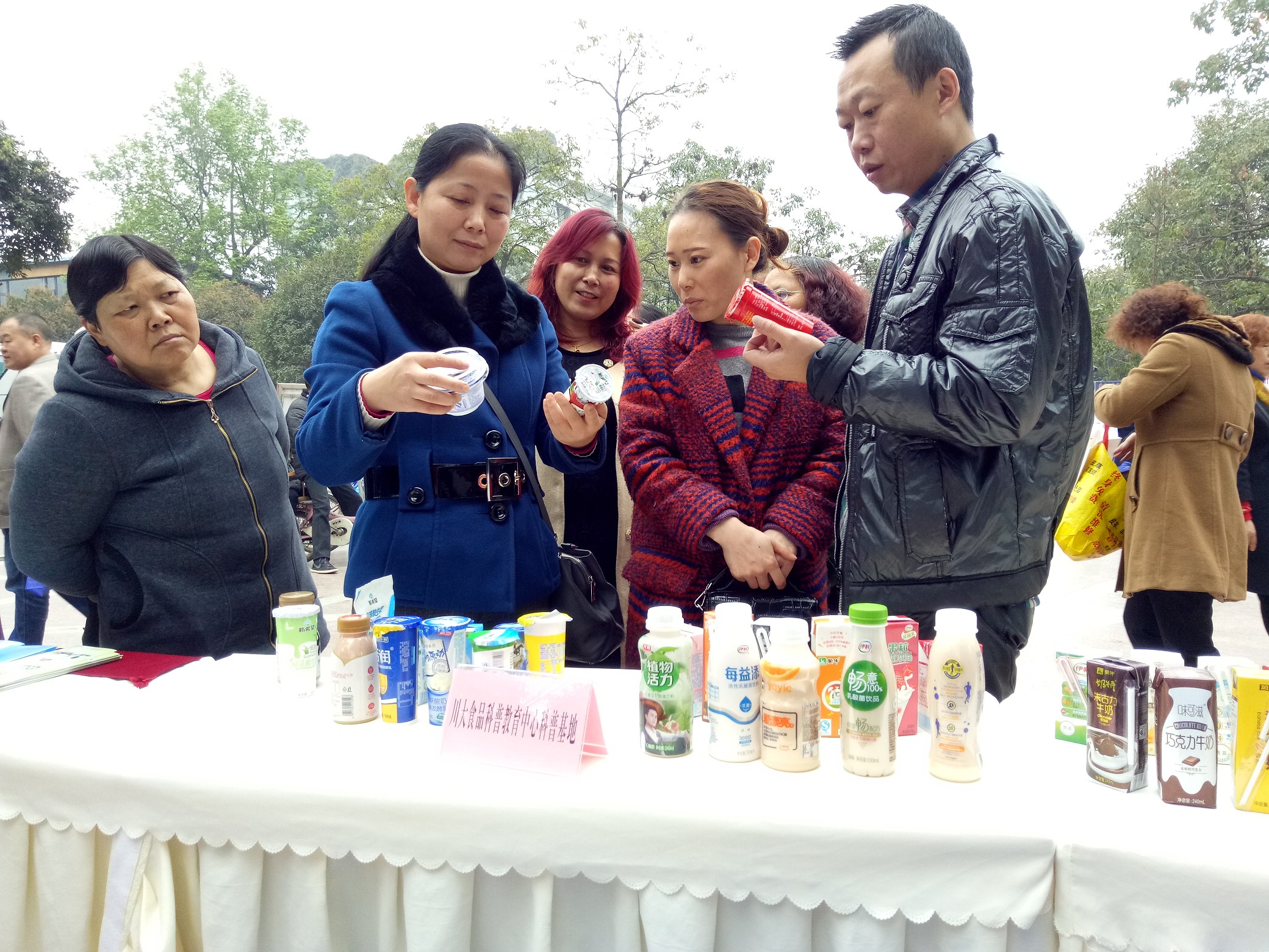 2017年3月29日,武侯区第二十二届“科技之春”科普活动月集中科普宣传活动在簇桥街道簇锦公园进行,我院食品科学科普教育中心吕远平教授和何贵萍老师携带市面上各类液态乳(酸奶,纯牛奶,各种乳饮料等)参加了此次活动,为广大市民带来了一场关于“液态乳与乳制品选择”的知识盛宴。活动过程中,提醒市民可通过乳制品包装盒(袋)上的标签来区分乳制品种类和认识乳制品的营养成分等,打破了有些人认为某种乳制品好或不好“一刀切”的观念,让大家对乳制品的选择有了比较理性和客观的认识。