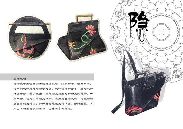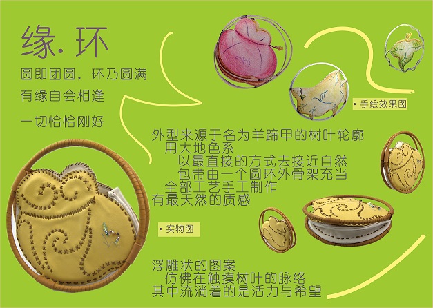 决赛当天,出席的嘉宾有中国皮革工业协会陈占光副秘书长,广州花都狮岭镇人民政府副镇长胡才波先生,广州狮岭皮革皮具产业研究中心周南主任、梁丽君女士,才聚文化集团熊金红总裁,轻纺与食品学院院长、生物质与皮革工程系系主任何有节教授,轻纺与食品学院党委副书记刘晓虎副教授,生物质与皮革工程系副系主任彭必雨教授,生物质与皮革工程系革制品设计教研室主任徐波老师等。本次决赛评委组由专业评委和嘉宾评委组成,对所有决赛作品进行了现场打分。十七副入围作品围绕设计灵感来源,作品主题,设计元素及制作工艺等方面进行了现场展示,作品风格或时尚,或复古,或自然,或简约,每一件作品背后,都蕴含着设计者们独特的思想理念及创意。经过激烈的角逐,最终,轻化工程专业革制品设计方向史舒婷同学作品《缘·环》和服装设计与工程专业张画画同学作品《隐》分获实物组和效果图组一等奖。随后,胡才波副镇长、周南主任、熊金红总裁、徐波老师为所有获奖同学颁奖。