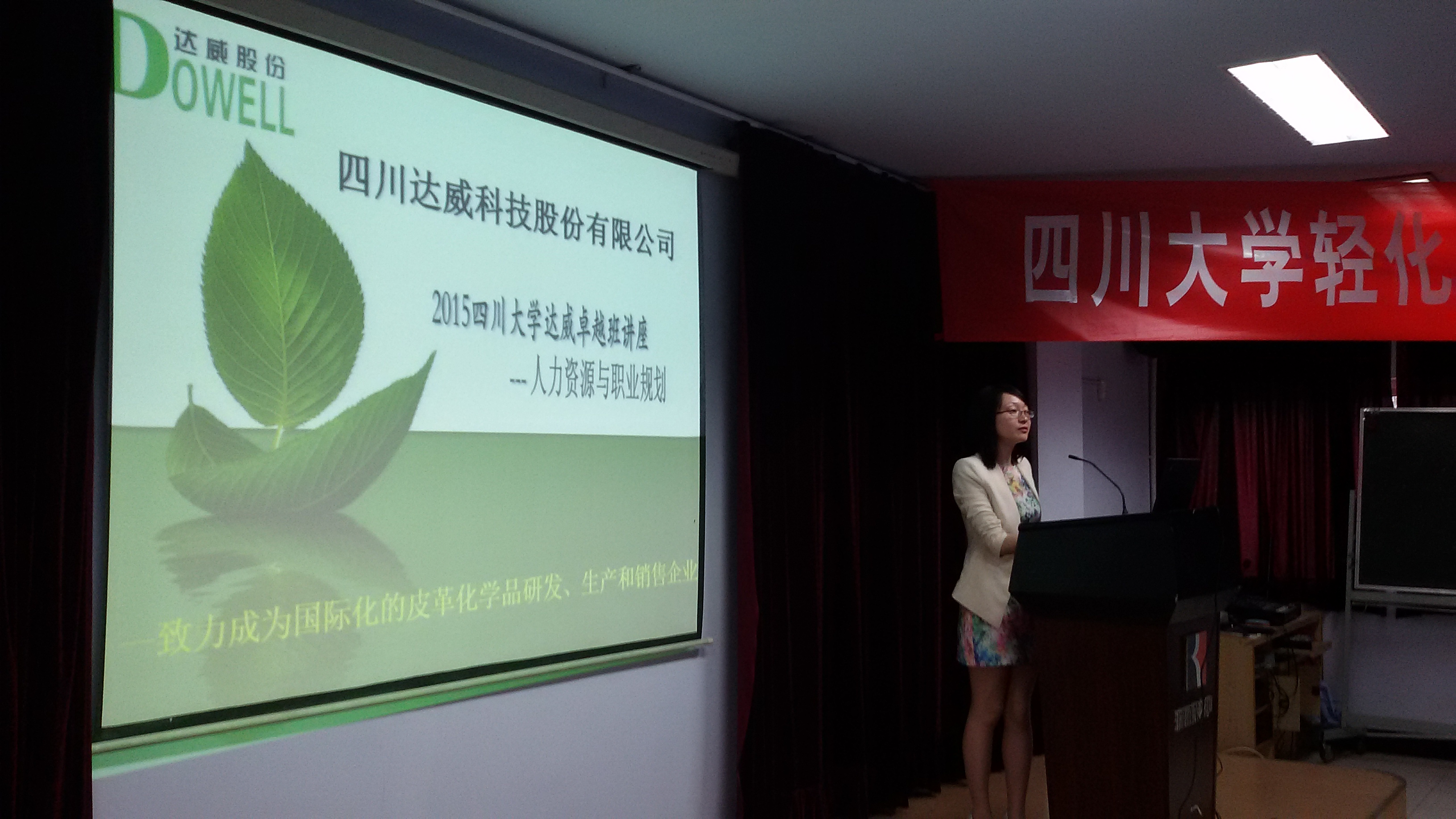 4月17日,四川达威科技股份有限公司副总经理曾晓林先生和人力资源部王疏影女士分别做了“轻化工程卓越计划专题讲座”.