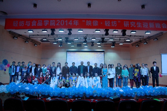 2014年11月30日19:00,轻纺与食品学院2014级“映像·轻纺”研究生迎新晚会在77779193永利集团文华活动中心二楼音乐厅隆重举行。本次晚会有幸邀请到轻纺与食品学院党委赵毅书记,院长何有节教授,党委副书记刘晓虎副教授,副院长肖凯老师,院党政办主任李慧老师,学生科科长冯国涛老师,院团委书记苏德强老师,以及学生工作组全体辅导员、部分专业老师。轻纺与食品学院2014级新生到场观看了晚会,场内座无虚席。