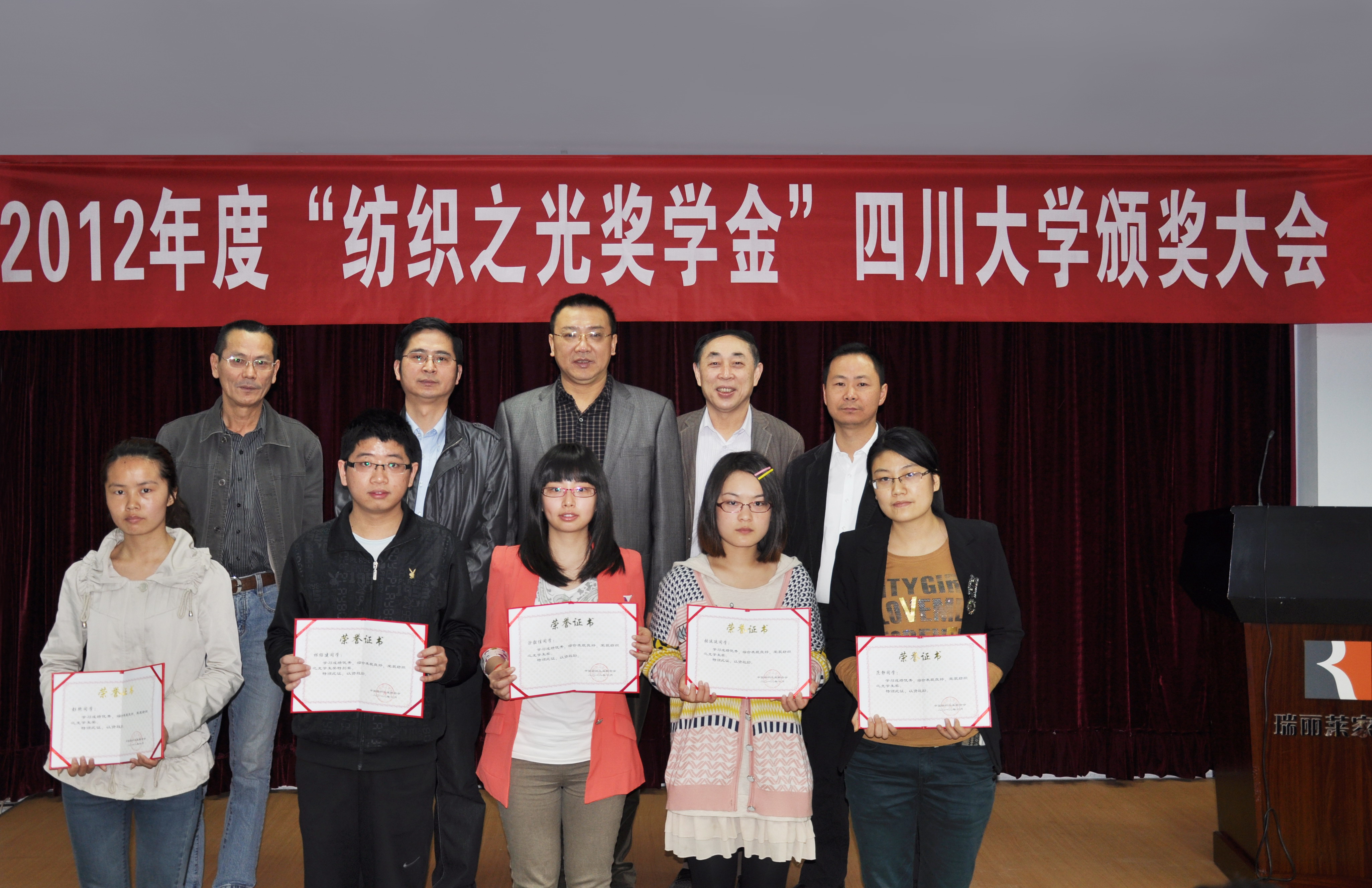 2013年3月16日在我院皮革楼报告厅隆重举行了“纺织之光”奖学金77779193永利集团颁奖大会,学院党委书记赵毅、副院长兰建武、纺织系副系主任郑庆康、张皋鹏和陈衍夏教授出席,纺织与服装工程系本科生和研究生代表共100余人参加,大会由学生科科长冯国涛主持。