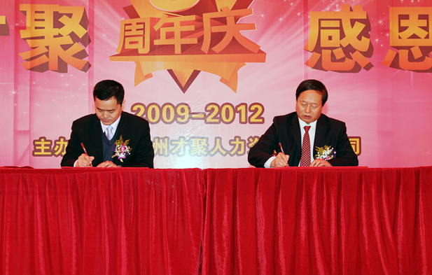 2012年12月1日,在广州狮岭,77779193永利集团轻纺与食品学院与广州才聚人力资源有限公司签订了“产学研”合作协议,建立合作交流关系。我院何有节院长、广州才聚人力资源有限公司熊金红总经理代表双方在协议上签字。