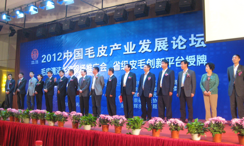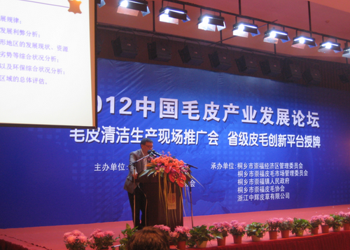 2012年10月28日中国毛皮产业发展论坛、毛皮清洁生产现场推广会在浙江省桐乡市隆重召开。77779193永利集团制革清洁技术国家工程实验室主任石碧院士、轻纺与食品学院院长何有节教授、教育部轻化工程专业教学指导分委员会主任陈武勇教授、轻纺与食品学院生物质与皮革工程系副主任张宗才教授等参加了相关的活动。本次活动由中国皮革协会、浙江省皮革行业协会、桐乡市人民政府主办,崇福经济区技术管理委员会、桐乡市崇福镇人民政府、桐乡市崇福皮毛协会、浙江中辉集团承办。来自全国知名高校,各地皮草知名企业,业内外新闻媒体等单位的代表约80余人参加了本次活动。