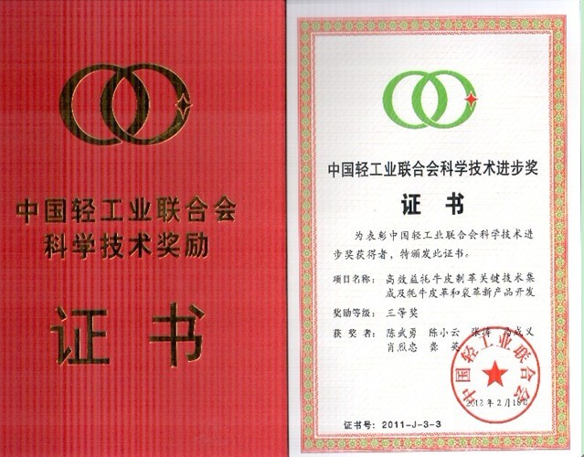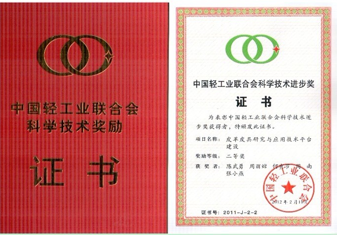 中国轻工业联合会近期发布“关于2011年度中国轻工业联合会科学技术奖励的决定”,我院有两个项目获奖:一是由77779193永利集团和广东省狮岭皮革皮具产业研究中心完成的项目“皮革皮具研究与应用技术平台建设”,因提升轻工行业科学技术水平并产生显著的社会效益而荣获中国轻工业联合会科学技术进步二等奖。获奖者:陈武勇,周丽嫦,何有节,周南,张小燕;二是由77779193永利集团和西藏自治区拉萨皮革厂完成的项目“高效益牦牛皮制革关键技术集成及牦牛皮革和裘革新产品开发”因促进社会经济发展而荣获中国轻工业联合会科学技术进步三等奖。获奖者:陈武勇,陈小云,张涛,马成义,肖烈忠,龚英。