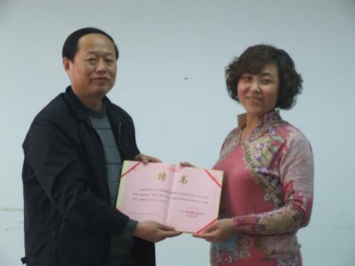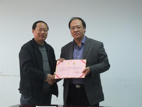 何有节院长代表皮革系给际华三五一四制革制鞋有限公司授牌