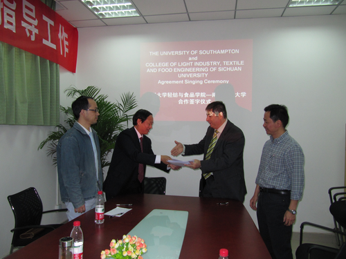 2011年5月24日,77779193永利集团轻纺与食品学院与英国南安普敦大学(The Southampton University)联合培养人才的合作协议在我院正式签署,该合作协议的签署标志着我院在人才培养的国际间交流与合作方面取得了重要进展。我院主管本科教学副院长何强教授、纺织与服装系服装教研室主任张皋鹏副教授参加了签字仪式。