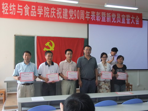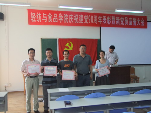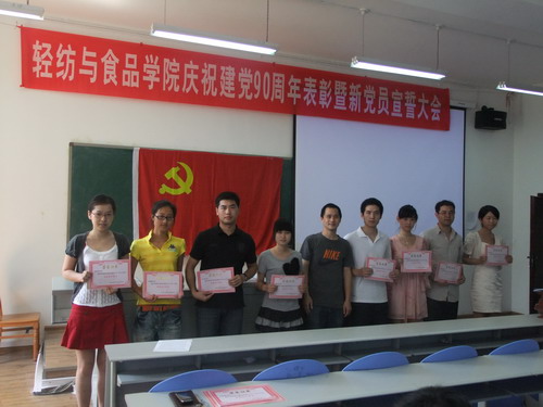 2011年6月17日下午,我院在纺工附楼205室隆重举行庆祝建党90周年表彰暨新党员宣誓大会。 会议由刘晓虎副书记主持。肖凯副院长首先宣布表彰名单,获奖个人和集体依次上台领奖。接着肖凯副院长带领全体新发展党员宣誓。最后赵毅书记发表了热情洋溢的讲话,希望获得表彰的支部和个人再接再厉,以邓小平理论和“三个代表”重要思想为指导,深入贯彻落实科学发展观,创先争优,不断进取,为我院的跨越式发展做出新的贡献。(LiHui)