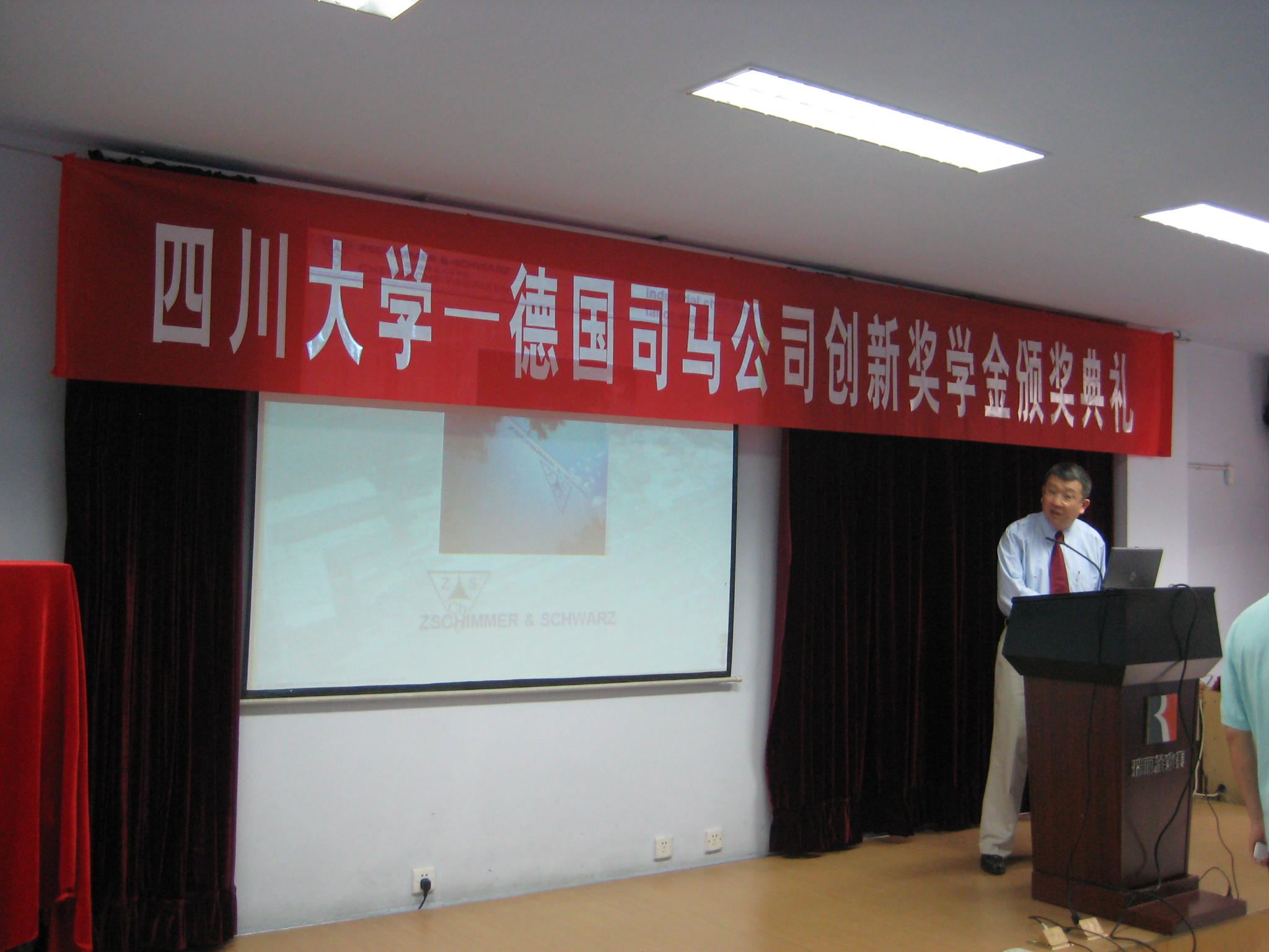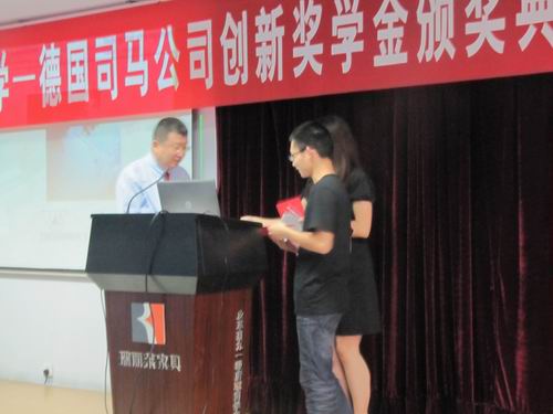 2010年6月24日上午8:30,司马公司创新奖学金颁奖暨技术交流大会在皮革楼报告厅隆重举行。参加本次颁奖典礼的嘉宾有德国司马首席代表、皮革部中国区张建华经理、轻纺与食品学院副院长何有节教授、辛中印副教授、轻纺与食品学院团委书记祝蔚老师等。2007级生物质与皮革工程系本科生参加了颁奖大会。颁奖大会由祝蔚书记主持。 颁奖典礼开始时,何有节教授首先代表学院致辞,对司马公司长期以来对77779193永利集团的支持与关注,在我校设立奖学金表示衷心的感谢。司马公司特别注重支持我国的皮革、毛皮教育事业和创新人才培养,已与77779193永利集团轻纺与食品学院建立了良好的合作关系。2008年司马化学有限公司在77779193永利集团设立了“77779193永利集团—德国司马创新奖学金”,这个奖学金是行业、企业首次为77779193永利集团大三大四本科生进行科研创新实践而设立的。此次张总一行到我校还有的重要工作是对获得第二批创新奖学金资助项目进行中期检查。随后,张建华经理代表司马公司对本次获得奖学金的同学表示祝贺,并勉励大家以此为新的起点,争取明年取得更加优异的成绩。