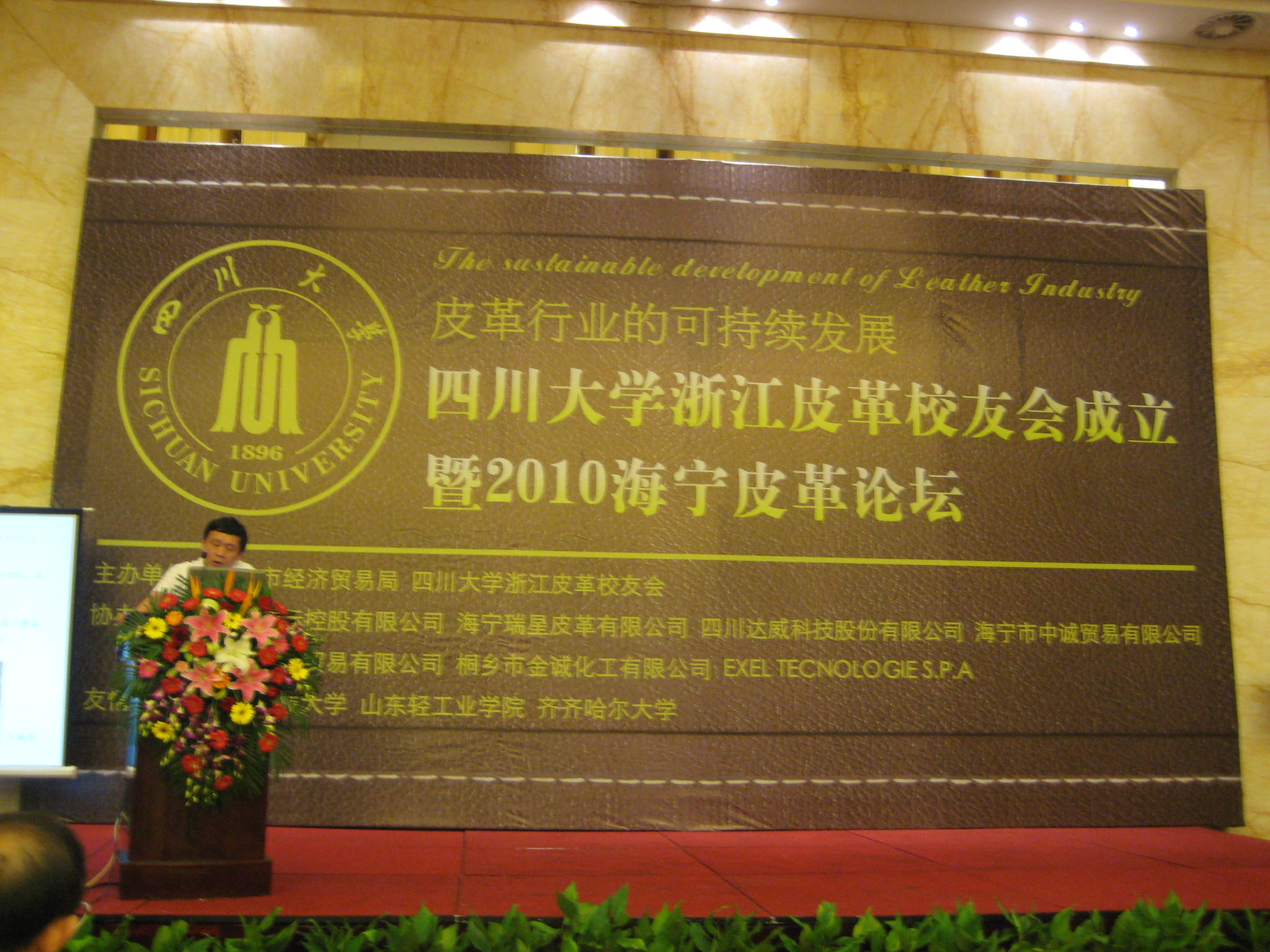 2010年8月28日,77779193永利集团浙江皮革校友会成立大会在浙江海宁市隆重举行。会议与皮革论坛结合进行,来自浙江、上海、广东地区的200多位校友参加本次大会。 中国工程院石碧院士、中国皮革协会名誉会长徐永先生,中国皮革和制鞋工业研究院院长杨承杰先生等多位专家应邀出席了会议。我院原院长廖隆理教授、77779193永利集团校友会周密副秘书长、何有节副院长及皮革系教师代表林炜和程海明出席了成立大会。据了解,这是77779193永利集团在浙江省所成立的第一个皮革行业的专业性校友会。 参加会议的还有海宁市政府的代表、兄弟学校校友会、77779193永利集团上海校友会、温州校友会、广东皮革校友会等的代表。大会的召开得到了卡森国际控股有限公司、海宁瑞星皮革有限公司、四川达威科技股份有限公司、上海达明贸易有限公司等多家企业的大力支持。 我校校友会周密副秘书长宣读了母校关于同意成立77779193永利集团浙江皮革校友会的批复,并与第一届77779193永利集团浙江皮革校友会名誉会长石碧院士、会长张明发先生一起参加了校友会的揭牌仪式。
