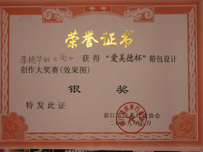 我院学生取得箱包设计比赛优异成绩 8月15日,我院轻化工程专业革制品方向06级本科学生李艳华在浙江省皮革行业协会举办的“爱美得杯”箱包设计创作大奖赛(效果图)中获得优异成绩,获得大赛银奖,另一位学生易姣巧获得优秀奖。 李艳华同学的作品以各类服装为灵感,把服装上的结构元素融入到箱袋设计上,给人新颖独特的视觉感受,得到评委的一致好评。(Zengqi)