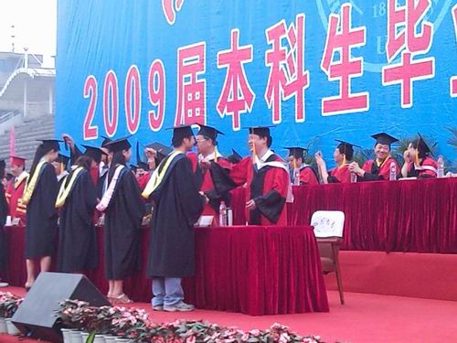 我院2009届本科毕业生参加学校学士学位授予典礼 2009年6月26日上午8:30,我校2009届学士学位授予典礼在望江校区体育场隆重举行。在学院学生工作组的组织下,我院2009届380名本科毕业生顺利参加了本次毕业授位典礼,标志着我院毕业生离校工作已经进入最后的环节。在此,学院预祝全体毕业生在校生活愉快,并希望你们在未来的人生征途中再创辉煌! 另我院石碧教授作为知名学者参加了本次典礼并为毕业生授位。