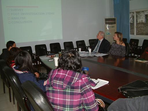 捷克 Tomas Bata 大学工程学院院长Petr Hlavacek 教授和Jitka Badurova 博士一行于2007年12月10日~12日对我校进行了访问。 访问期间Petr Hlavacek 教授一行与轻纺与食品学院院长陈武勇教授和革制品教研室徐波主任,以及本科04级和05级的同学就糖尿病功能鞋的设计和开发以及相关的内容进行了讨论,并交换了意见。本次访问也促进了双方的进一步合作,加强了两校间合作和交流,同时也增进了两校间的友谊。 捷克 Thomas Bata 大学工程学院院长Petr Hlavacek 教授是世界上著名的功能鞋设计专家,Petr教授具有丰富的设计经验,其设计的糖尿病人功能鞋已在欧洲销售多年。