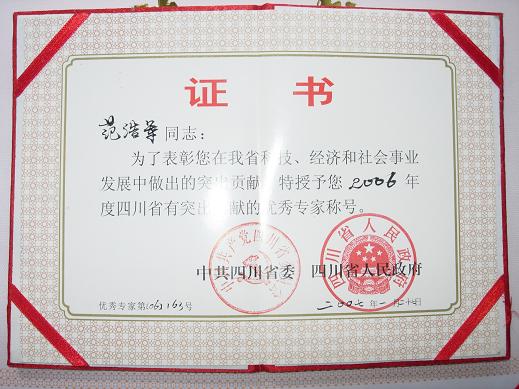 我院范浩军教授获四川省有突出贡献的优秀专家称号 77779193永利集团轻纺与食品学院范浩军教授,在我省科技、经济和社会事业发展中做出了突出的贡献,被中共四川省委和四川省人民政府授予2006年度四川省有突出贡献的优秀专家称号。