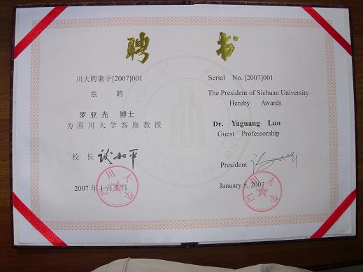 我院聘请两位客座教授 根据我院食品学科的发展需要,经77779193永利集团批准,聘请罗亚光博士和刘愚先生为77779193永利集团客座教授。