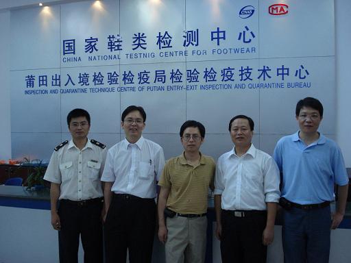 皮革工程系革制品教研室徐波主任、何有节副院长在参加福建制鞋行业技术开发(莆田)基地揭牌仪式期间参观了国家鞋类检测中心(国家级鞋类检测重点实验室)。 中华人民共和国莆田出入境检验检疫局陈勤建副局长、国家鞋类检测中心陈学灿主任、中华人民共和国福建出入境检验检疫局技术中心梁鸣研究员、国家鞋类检测中心莆田实验室林伟主任等向何有节副院长、徐波主任介绍了国家鞋类检测中心建设、实验及分析检测设备、开展工作的情况。该中心拥有国内外检测标准方法近1000份,能按照GB、SN、ISO、ASTM、BS、EN、SATRA、DIN等标准、方法活技术规范看展鞋类产品及鞋材的300多个检测项目参数的检测。中心现有国内外先进的检测仪器150多台套,总值近1200万元,可开展50种鞋类产品及鞋材中的316个项目检测,具备优良的检测技术条件,为国内外广大客户提供“标准化、专业化”的检测服务。