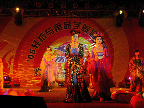 晚会以2004级纺织班小合唱《让世界充满爱》暖场拉开序幕后,学院党委刘学文书记作了热情洋溢的讲话;陈武勇院长为11月份过生日的新生送上了温馨的祝福并现场将2003级食品专业学生精心制作的生日蛋糕切分;随后川大老教师舞蹈团献上的舞蹈《七月火把节》、《美阿里》一下子将晚会的气氛推向高潮;接下来从近三十个报送节目中脱颖而出的十二个节目逐一闪亮登场,它们中既有耳熟能详的流行音乐,又有底蕴深厚的戏剧连唱,既有充满动感的舞蹈,又有静如流水的古筝弹奏,既有严谨的传统相声,又有搞怪的网络短剧,最值得一提的是2004级服装专业近似专业的作品展示秀,引来了新生的阵阵喝彩;最后,晚会在2005级新生的一曲《明天会更好》中圆满结束。