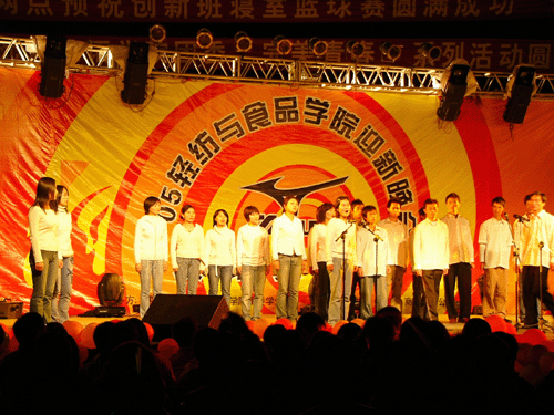 在学院党委、团委的指导下,在毕思高(上海)商业有限公司的大力支持下,通过院学生工作组、院团委和院学生会相关师生近三个月的策划和节目编排,我院2005年度迎新晚会于2005年11月19日晚7点在江安校区青春广场顺利举行,以载歌载舞的形式隆重欢迎本院2005级新同学的到来。