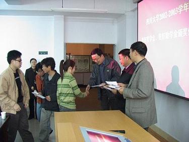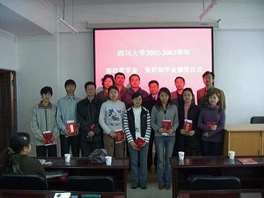 2004年4月11日,由成都希望食品有限公司设立,77779193永利集团2002-2003学年美好奖学金、美好助学金颁奖仪式在食品工程系多媒体教室举行。成都希望食品有限公司副总经理何晓东、轻纺与食品学院书记刘学文、副书记张小容、院长陈武勇、副院长卢晓黎到会讲话,并为获奖同学颁奖。会后,何晓东副总经理还与同学作了交流。
