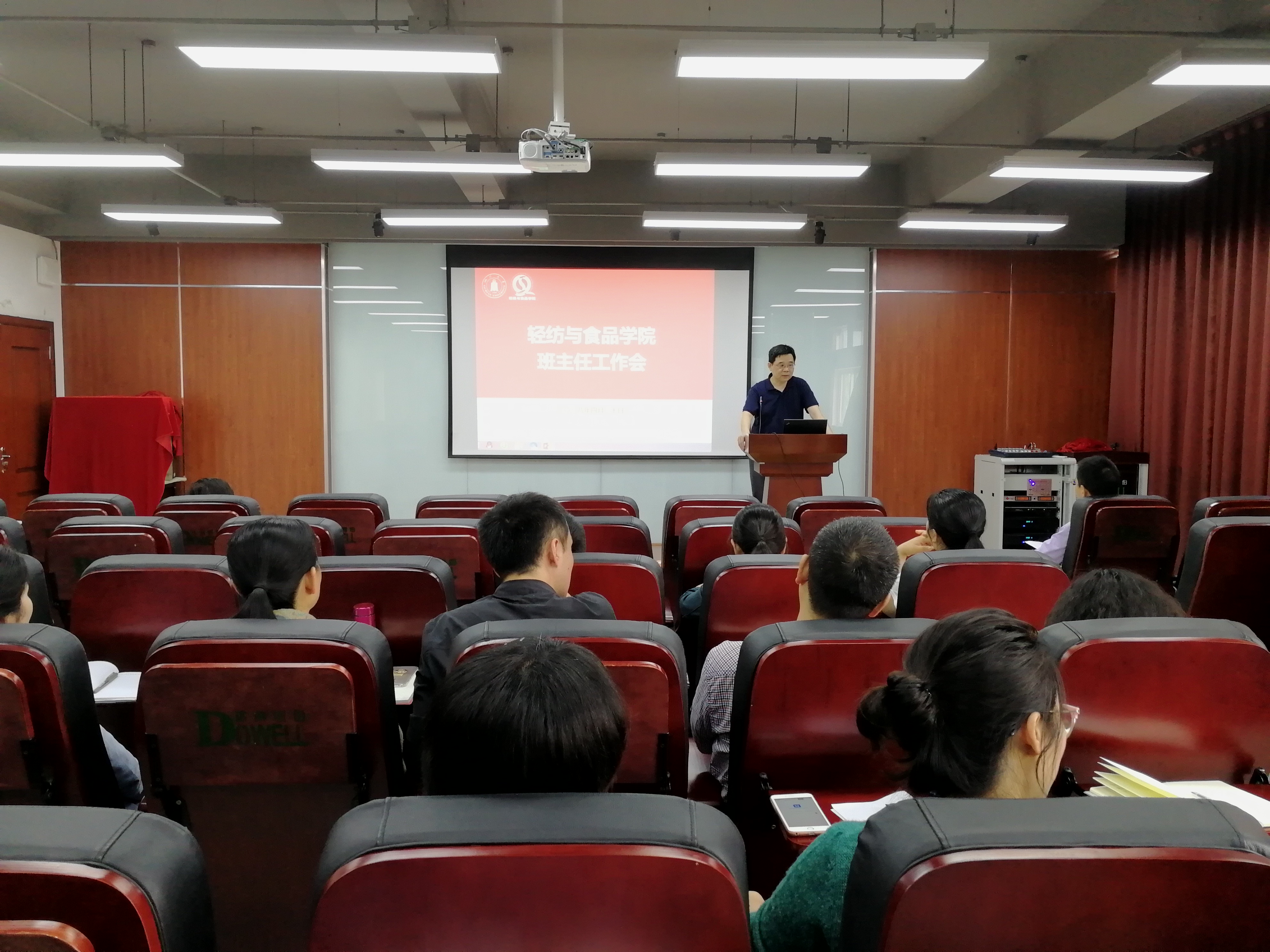 最后,作为班主任代表,何有节院长就自己担任班主任以来所开展工作情况向大家介绍了自己的体会和建议。何院长首先强调“班主任-学院-专业-辅导员”联动机制的重要性,这是学校多位一体、全员育人的重要举措,也是以学生为中心开展工作的具体形式;同时,何院长非常关注班主任与学生交流在“量”、“质”、“内容”、“形式”四方面的有机统一,分享了自己自从担任学分制指导教师、到班主任多年以来积累的工作经验,希望每位班主任老师都积极主动开展工作,为轻纺学院人才培养提供坚强的组织保障。