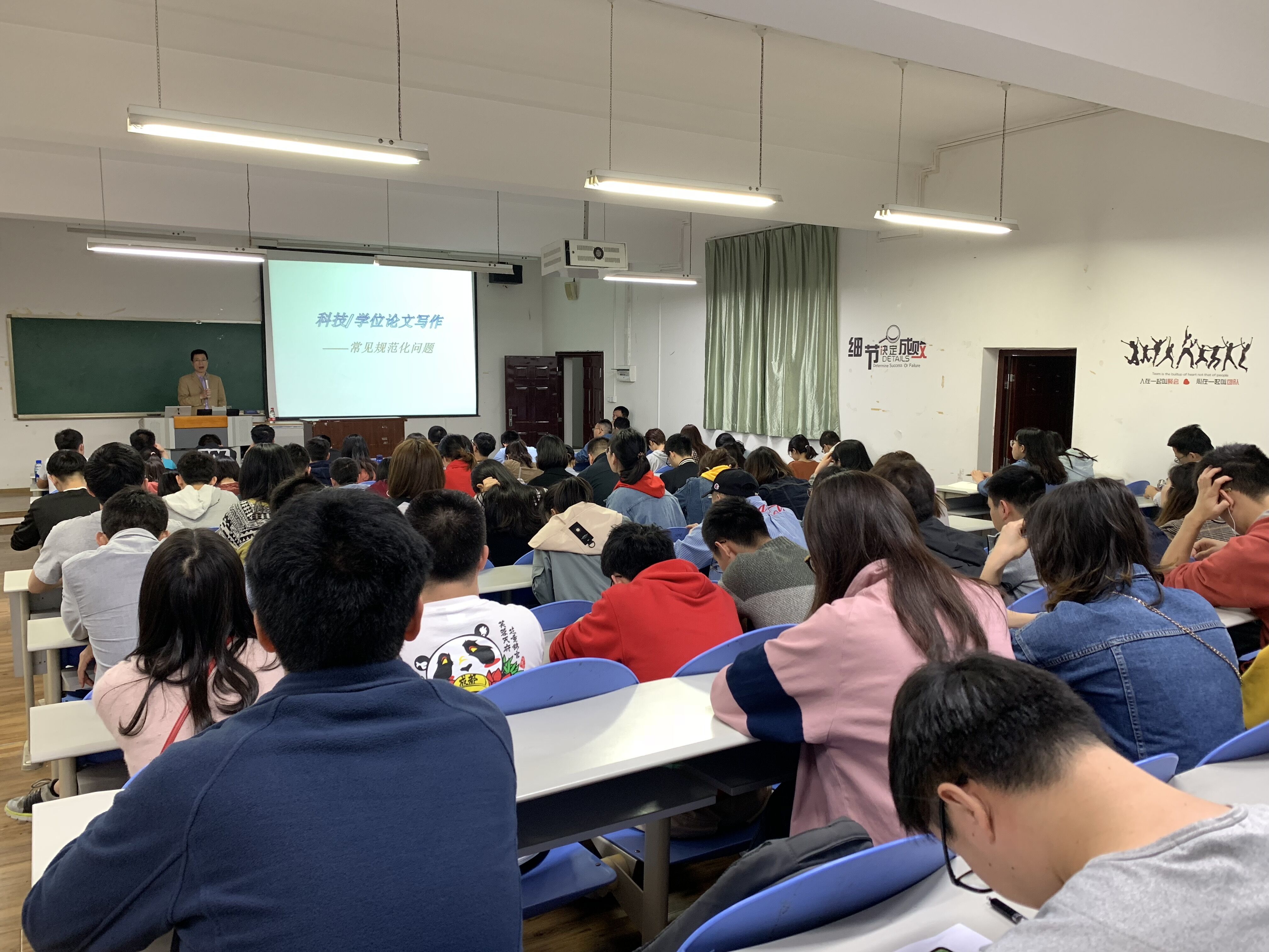 为了加强研究生学术诚信、学术道德教育,培养研究生学术科技论文写作能力,提升学位论文写作质量,轻纺与食品学院把学术科技论文写作规范培训融入到《研究生综合素质课》的整体教学计划中。2019年5月9日晚,学院邀请《皮革科学与工程》杂志主编、《中国皮革》杂志编审、四川省学术技术带头人、中科院成都有机所客座研究员、博士生导师单志华教授为我院研究生开展了学术科技论文写作规范培训。本次主题培训会由院党委副书记冯国涛老师主持, 2018级全体硕博士研究生参加。