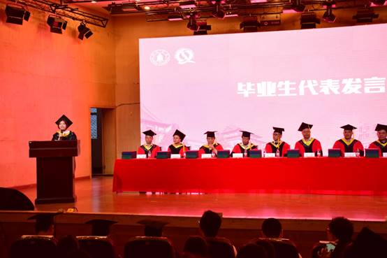毕业生代表,食品科学与工程专业陈琳同学回顾了四年来在川大,在轻工科学与工程学院的学习经历和生活感受,感恩学校与学院文化带给同学们的深刻影响,号召全体毕业生“不负师恩,不灭理想,不辞辛苦,不忘初心。竭尽所能创造更有价值、更有意义的人生”,也祝愿大家“长风破浪会有时,直挂云帆济沧海,前程似锦,毕业快乐”。