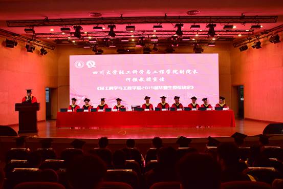 (何强教授宣读《轻工科学与工程学院2019届毕业生授位决定》)