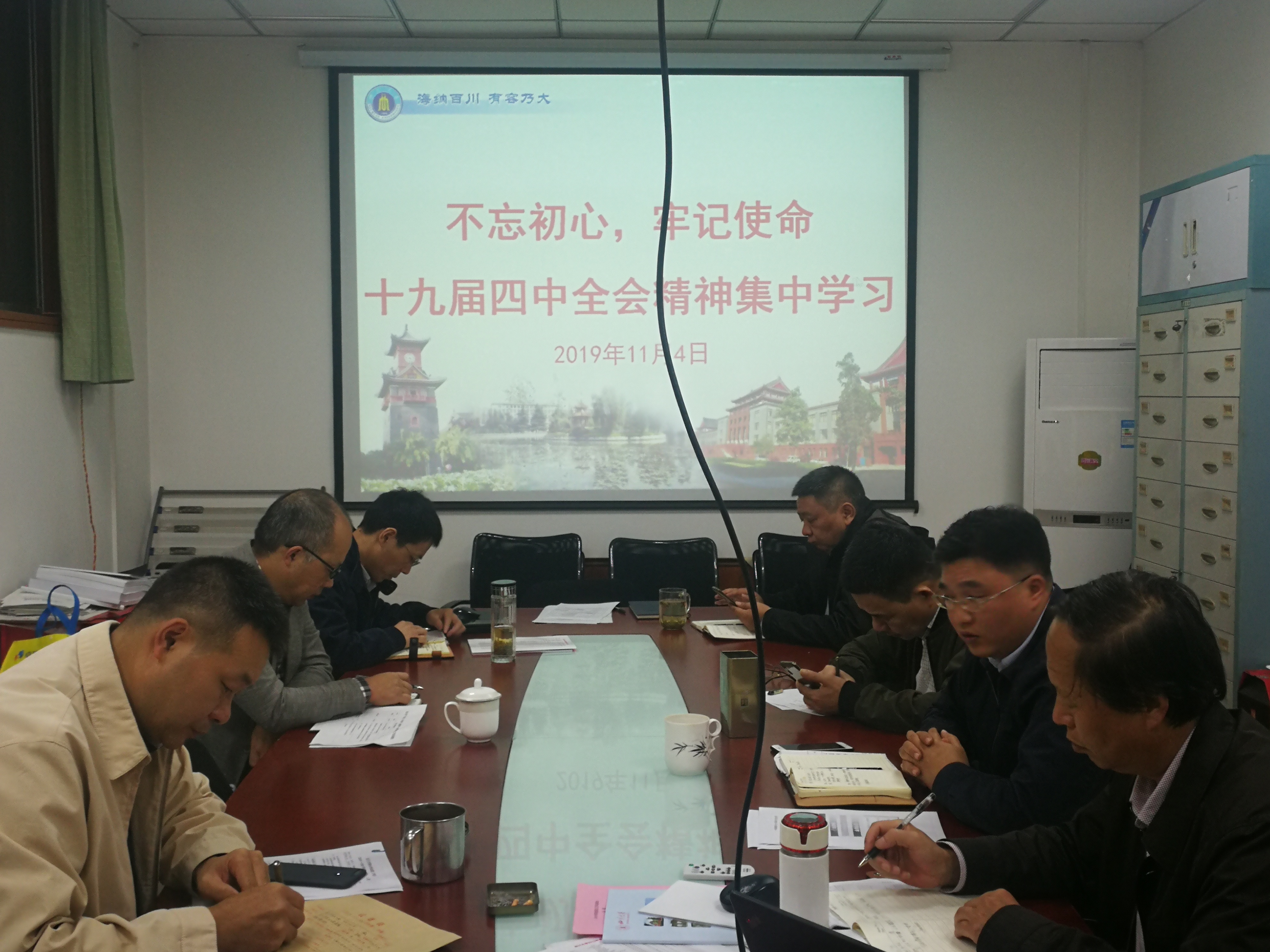 2019年11月4日、11月7日,我院在纺工附楼201会议室召开十九届四中全会精神学习。学院领导班子成员、教职工党支部书记参加了本次集中学习。对十九届四中全会精神中坚持党的领导、坚持社会主义制度、制度保障、治理方略等方面进行了重点学习。下一步,还要组织全院师生对十九届四中全会精神进行学习研读。
