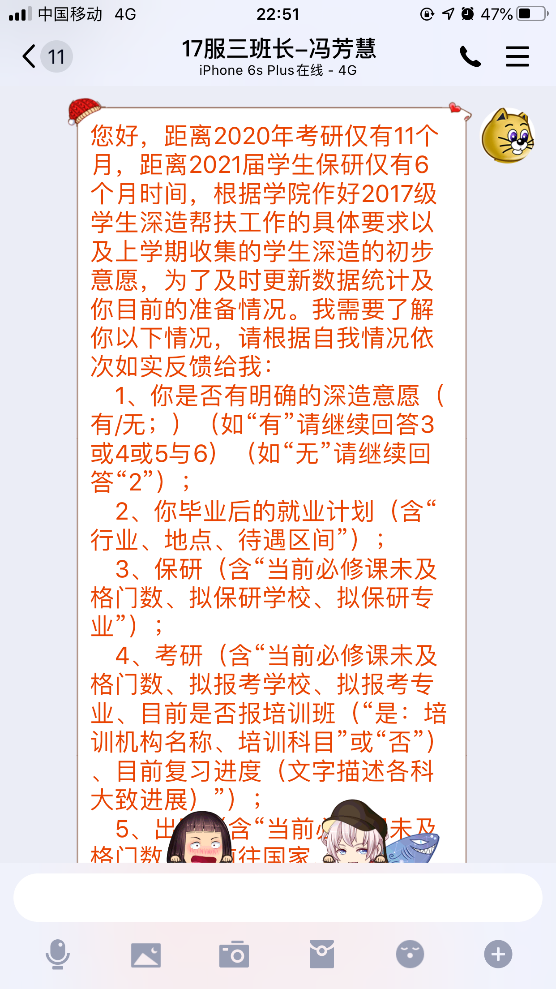 防疫期间,学院辅导员利用学生“宅”家空闲时间较多的时机,一对一的对大三学生进行深造规划指导与对大四学生的深造进度指导与就业跟踪,为提升学生核心竞争力奠定基础。
