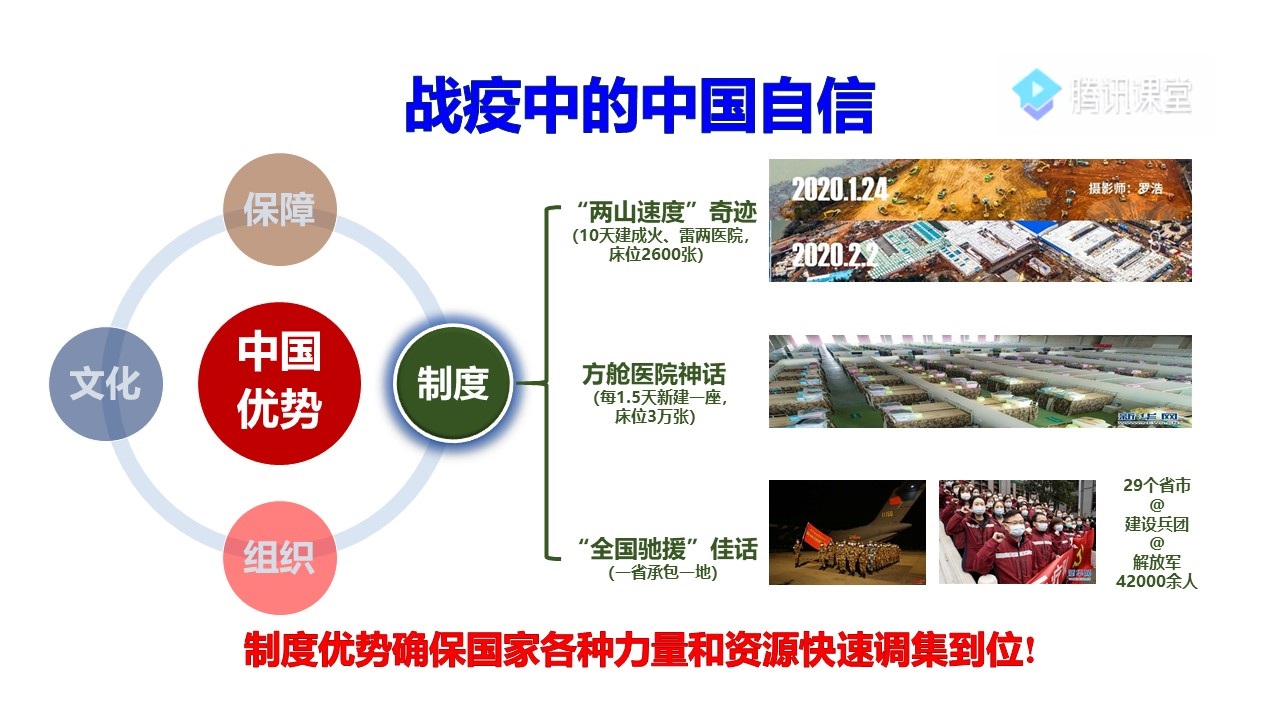 刘书记精心准备了2020年春季学期学生形势报告,主要从战役中的中国自信、校院疫情防控概况、勇挑重担奋发有为等三个方面展开。首先与同学们一起回顾了习近平总书记《给北京大学援鄂医疗队全体“90后”党员的回信》内容,结合当下新冠肺炎疫情全球、全国官方数据发布,引导同学们认识到中国在这场战役中取胜的决定因素,明确指出国家的有力组织、制度优势、文化宝藏、制造业基础是我们战“疫”的杀手锏,党中央的坚强领导和战无不胜的中国精神、中国智慧和中国力量是抗疫斗争取得阶段性胜利的重要法宝。刘书记要求全体同学自觉树牢“四个意识”、增强“四个自信”、做到“两个维护”,并告诫同学们疫情尚未结束,疫情防控的思想防线不能松懈,做好打持久战的准备!