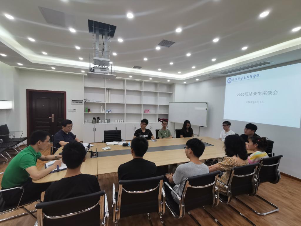 同时,2020年6月9日下午在皮革楼203举行了2020届结业生座谈会。院党委副书记冯国涛老师、副院长彭必雨教授参加了此次座谈会。两位领导认真听取了在座同学的自我学习情况介绍及后期规划,对同学们在四年中的出现的小波折给予学习指导,并鼓励同学们要加强反思,总结经验教训,在人生的长跑中不再掉队。
