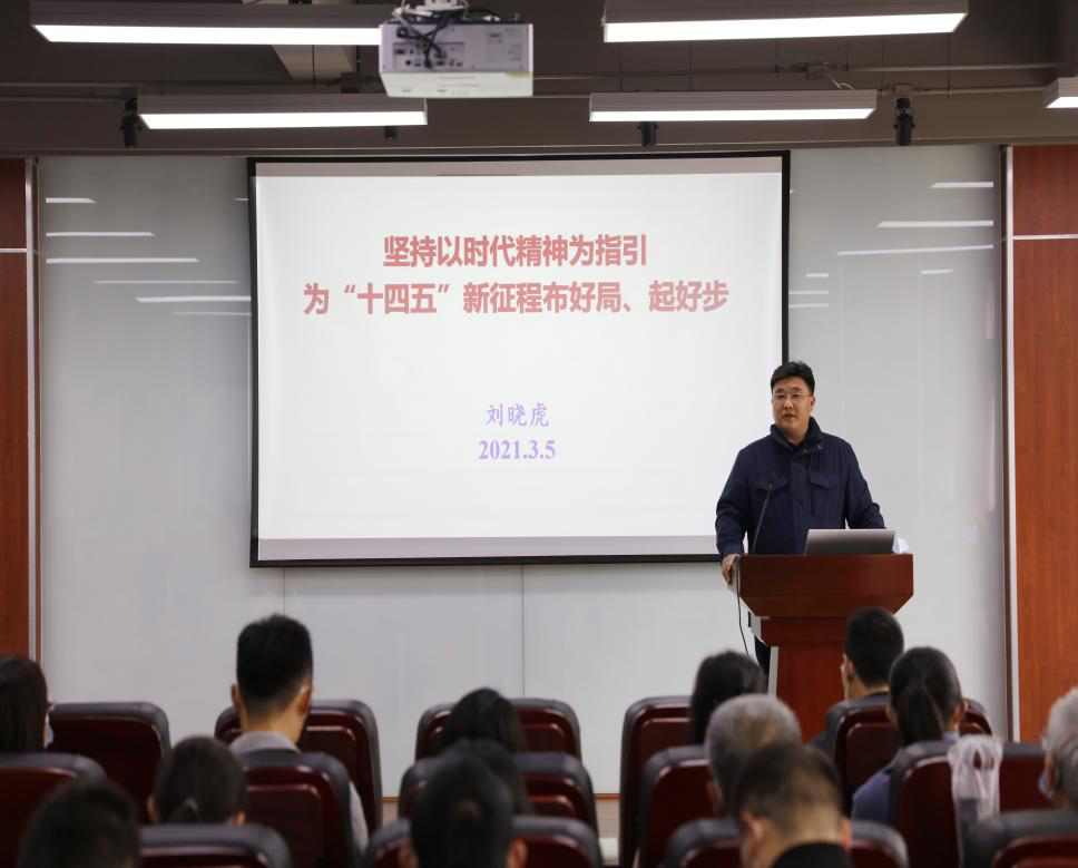 刘晓虎书记以“十九届五中全会”、“全国抗击新冠肺炎疫情表彰大会”、“全国脱贫攻坚总结表彰大会”三场重要会议精神启示作为开场,提振全体教职工干事创业的劲头和全力以赴投入新学期的新状态。向全体与会人员传达了王建国书记和李言荣校长在2021年度工作布置会和第四届教代会暨第三届工代会第五次会议上的讲话精神。带领全体教职工回顾总结了学院2020年度工作开展情况,就工作开展中出现的问题进行深度剖析,并从三个方面对本年度重点工作进行安排和部署,提出2021年度工作思路及重点举措。一是继续做好疫情防控,守护师生安全。二是继续发挥党建对学院各项事业发展的引领作用,做到方向更聚焦、抓手更实在、推进更规范、引领更突显,以实际行动庆祝建党一百周年。三是以“十四五”发展规划为引擎,牵引核心竞争力进一步提升,并从人才培养、学科建设、科学研究、服务保障等维度进行了重点部署。
