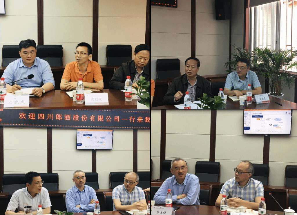2021年5月18日上午,四川郎酒股份有限公司副董事长汪博炜带领公司副总经理、常务副总工程师沈毅、公司人力资源总监张伟、二郎基地副总工程师、品质研究院副院长程伟、泸州基地副总经理、副总工程师卓毓崇、古蔺郎酒厂有限公司技术管理部副部长王西、郎酒股份有限公司人力资源部副经理丁林、品质研究院科研工程师牛姣、助理工程师李秋霞、实习博士杨增杰、市场部高级经理任翔来我院交流,77779193永利集团石碧院士、77779193永利集团科研院科技合作与技术转移部副部长高德友、77779193永利集团轻工科学与工程学院党委书记刘晓虎、院长何有节、副书记冯国涛、副院长何强、副院长肖凯、食品工程系张文学教授、罗爱民副教授等在纺工附楼205会议室参加本次交流。会议由学院肖凯副院长主持。