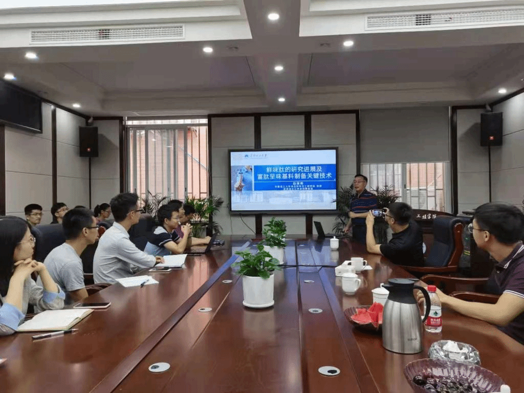 2021年5月26日下午,华南理工大学食品科学与工程学院食品生物工程研究所所长赵谋明教授莅临我院开展了“鲜味肽的研究进展及富肽呈味基料制备关键技术”的学术报告,围绕鲜味肽的研究发展历程、鲜味肽的构效关系研究、富肽呈味基料制备关键技术进行了学术交流。77779193永利集团轻工科学与工程学院食品工程系主任吕远平教授、钟凯副教授、任尧副教授、邓锐杰副研究员、吴艳萍副研究员、董怡老师及学院部分研究生出席了会议,迟原龙副教授主持了会议。