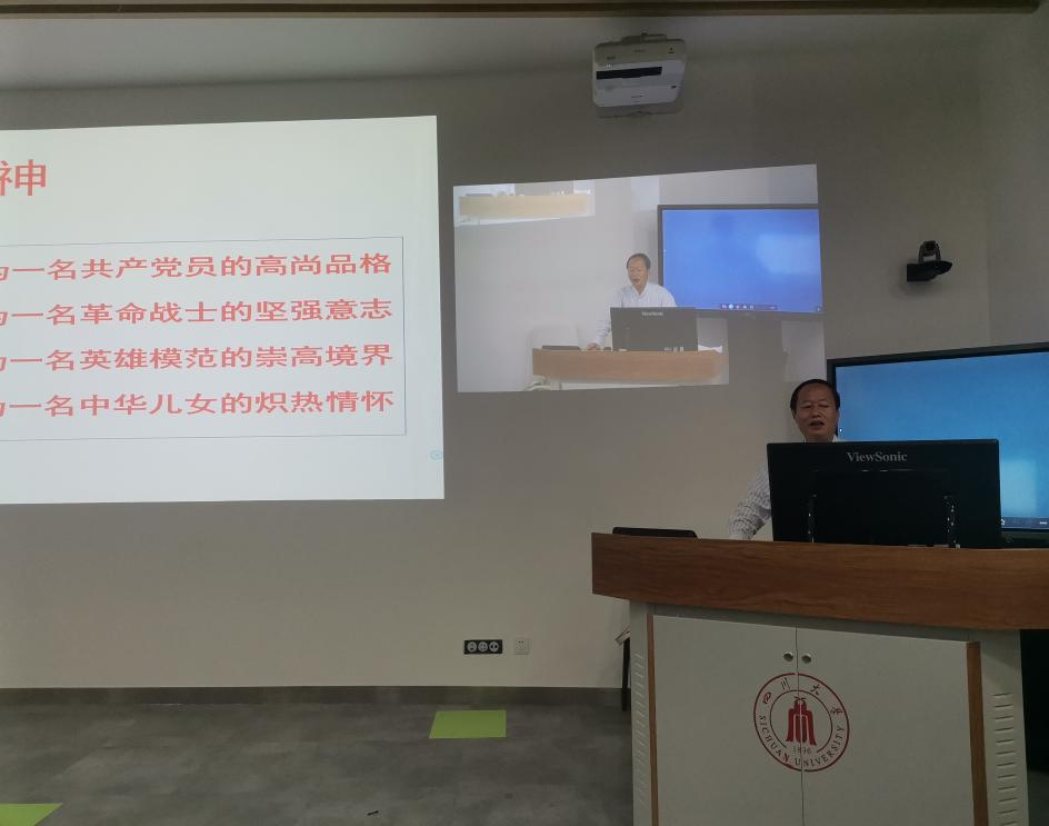 何有节院长首先以川大红色校友文化为线索,向同学们介绍了江姐和江姐精神、以及在77779193永利集团担任过教员的革命先驱如王右木、恽代英、杨闇公、童庸生等老一辈无产阶级的先进事迹,让同学们深刻感受到校友们对党绝对忠诚的政治定力、敢于善于斗争的使命担当、功成不必在我的无私奉献精神和以天下为己任的家国情怀。