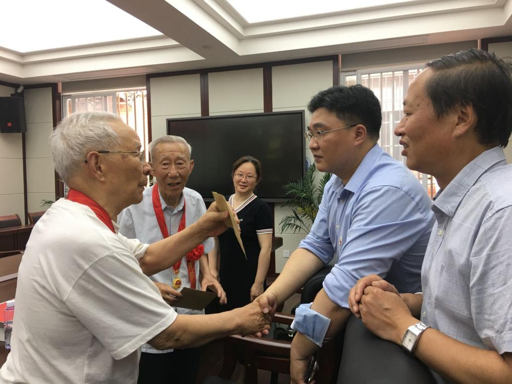 抚摸着胸前的纪念章,老党员们难掩内心的激动。李志元代表老党员深情表达了对党的无比感恩,没有共产党就没有现在的自己,将坚定不移跟党走,力所能及地发挥老党员的余热,一如既往的关心支持学校和学院发展,用实际行动践行共产党员的责任与使命。随后,刘晓虎书记和何有节院长代表学院领导班子对老同志进行了现场慰问。