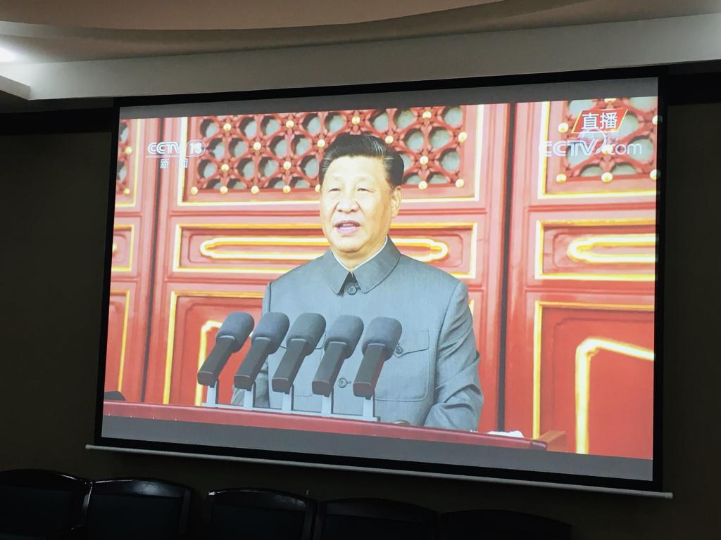 7月1日上午,庆祝中国共产党成立100周年大会在北京天安门广场隆重举行。中共中央总书记、国家主席、中央军委主席习近平发表重要讲话。学院组织领导班子成员、两委委员、党支部负责人、系所负责人、科级干部等在皮革楼209会议室集体收看庆祝大会实况转播,其余师生按照既定安排也以手机、电脑、电视等多种形式认真收听收看庆祝大会。