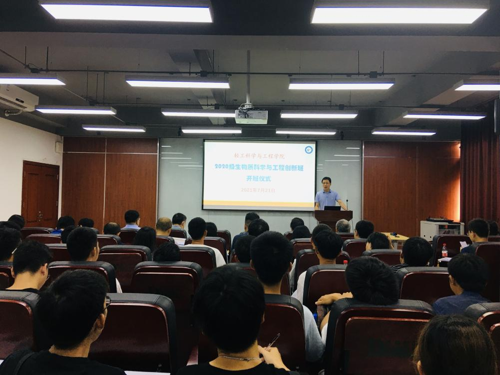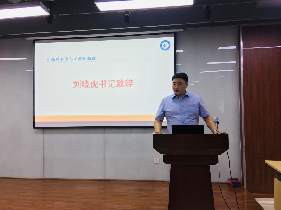首先,学院党委刘晓虎书记作开班致辞。刘晓虎书记代表学院党政向经过严格选拔的创新班学员表示祝贺和欢迎,向为创新班建设付出辛苦努力的教师表示感谢。刘书记指出,轻工科学与工程学院的办学具有行业背景和特色传统,生物质科学与工程创新班是响应国家新工科建设、学校人才培养改革创新以及推动学院传统工科专业内涵式发展的创新性探索。刘书记强调,导师、学生、服务保障是关系创新班能否实现高水平、长效、有序发展的关键,并从这三个维度阐释了办好创新班的信心与底气。最后提出将创新班办出水平和质量的共同愿景。