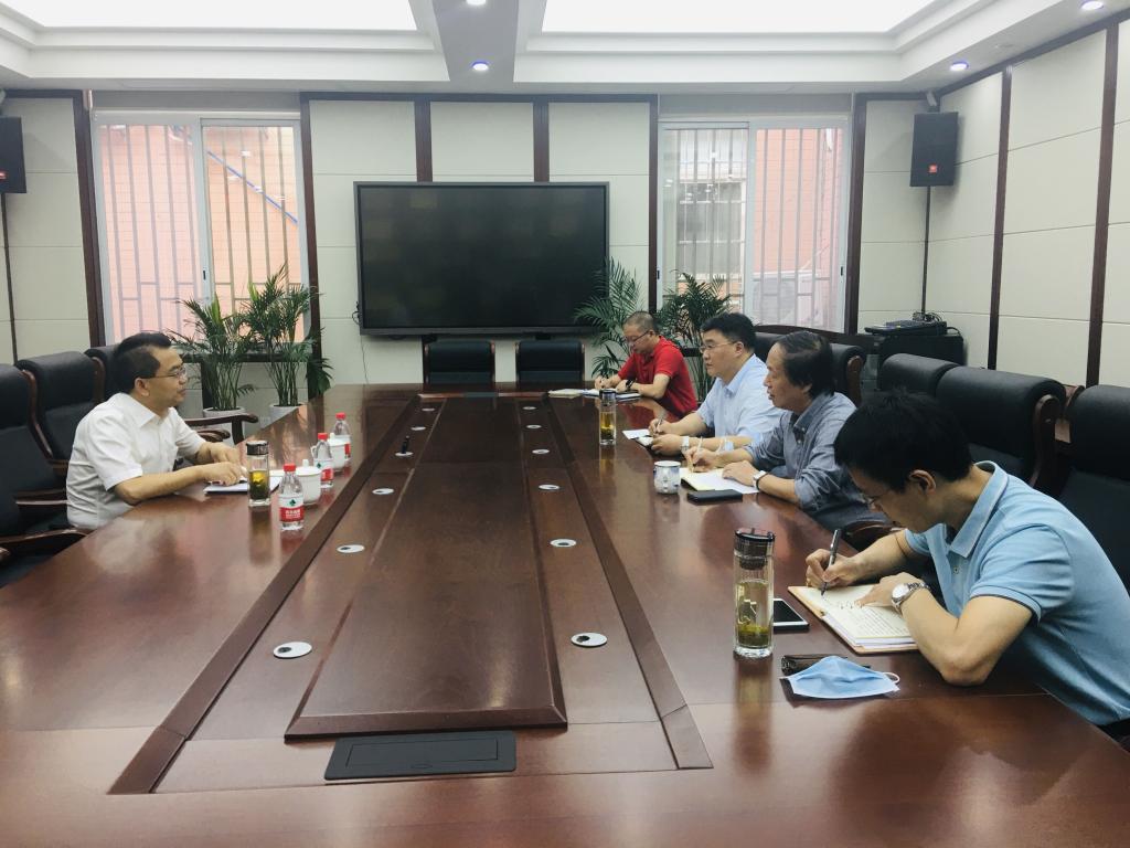 2021年8月31日上午,褚良银副校长到院调研指导新学工作。学院党委刘晓虎书记、何有节院长、冯国涛副书记院长助理周建飞在纺工附楼205会议室参加会议