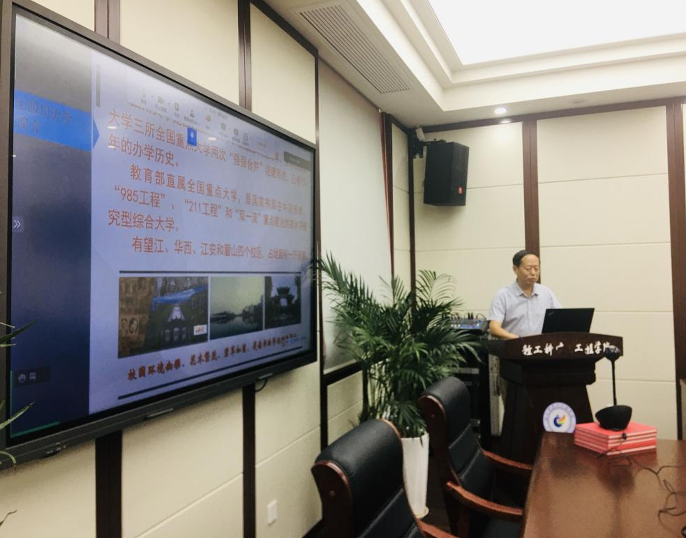 随后,何有节教授对学校和学院的具体情况进行了介绍,详细讲解了学校悠久的历史沿革、雄厚的教学实力、齐全的学科门类,以及学院的本科教学计划和“323+X”培养模式等,最后介绍了学院的优秀师资力量和高水平教学平台。