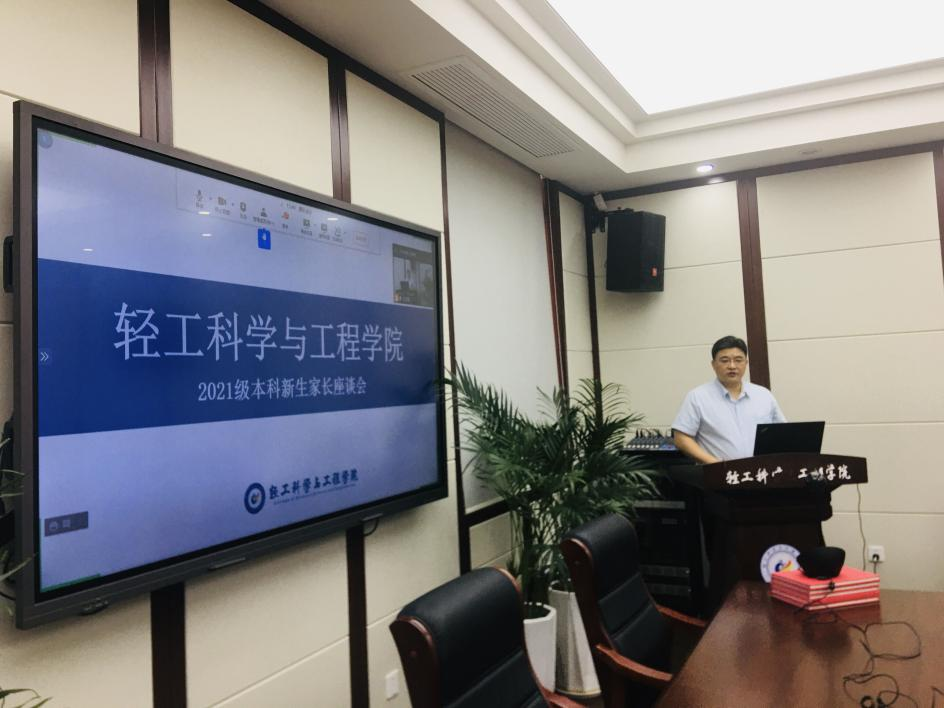 2021年9月4日上午,为了让新生及其家长更好地了解学院,增强其对学院的认同感和归属感,构建“家校共育”的人才培养体系,学院在纺工附楼205会议室召开2021级本科生家长座谈会。本次家长座谈会采取线上线下相结合的方式进行,线下出席本次会议的嘉宾有轻工科学与工程学院党委刘晓虎书记、何有节院长、冯国涛副书记、肖凯副院长、祝蔚院长助理、生物质与皮革工程系副系主任程海明教授、食品科学与工程系副系主任迟原龙副教授、纺织与服装工程系副系主任赵武副教授以及2021级本科生辅导员王舒灏老师。300余名新生家长通过腾讯会议参加了线上座谈会,本次会议由学院党委副书记冯国涛老师主持。