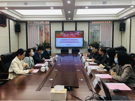 2021年11月2日下午,东华大学纺织学院党委陈志刚副书记率干部代表团访问我院,就学生党建工作、创新人才培养、学生工作等方面进行调研交流。学院何有节院长、党委冯国涛副书记、学生事务办公室全体教师参加了交流活动。会议由冯国涛副书记主持。