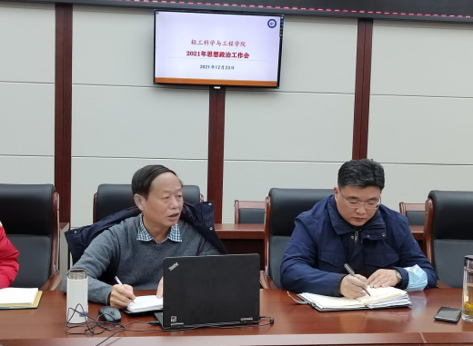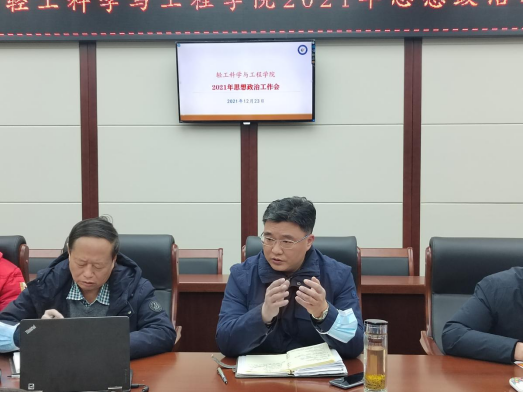 202112月23日上午,院在纺工附205会议室召开了2021年思想政治工作会。学院领导班子、党委委员、党支部书记、系所干部、科级干部以及全体辅导员、教导员参会,会议由冯国涛副书记主持。